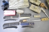 15674. Parti skrivset marmor & rakknivar, längsta 26 cm