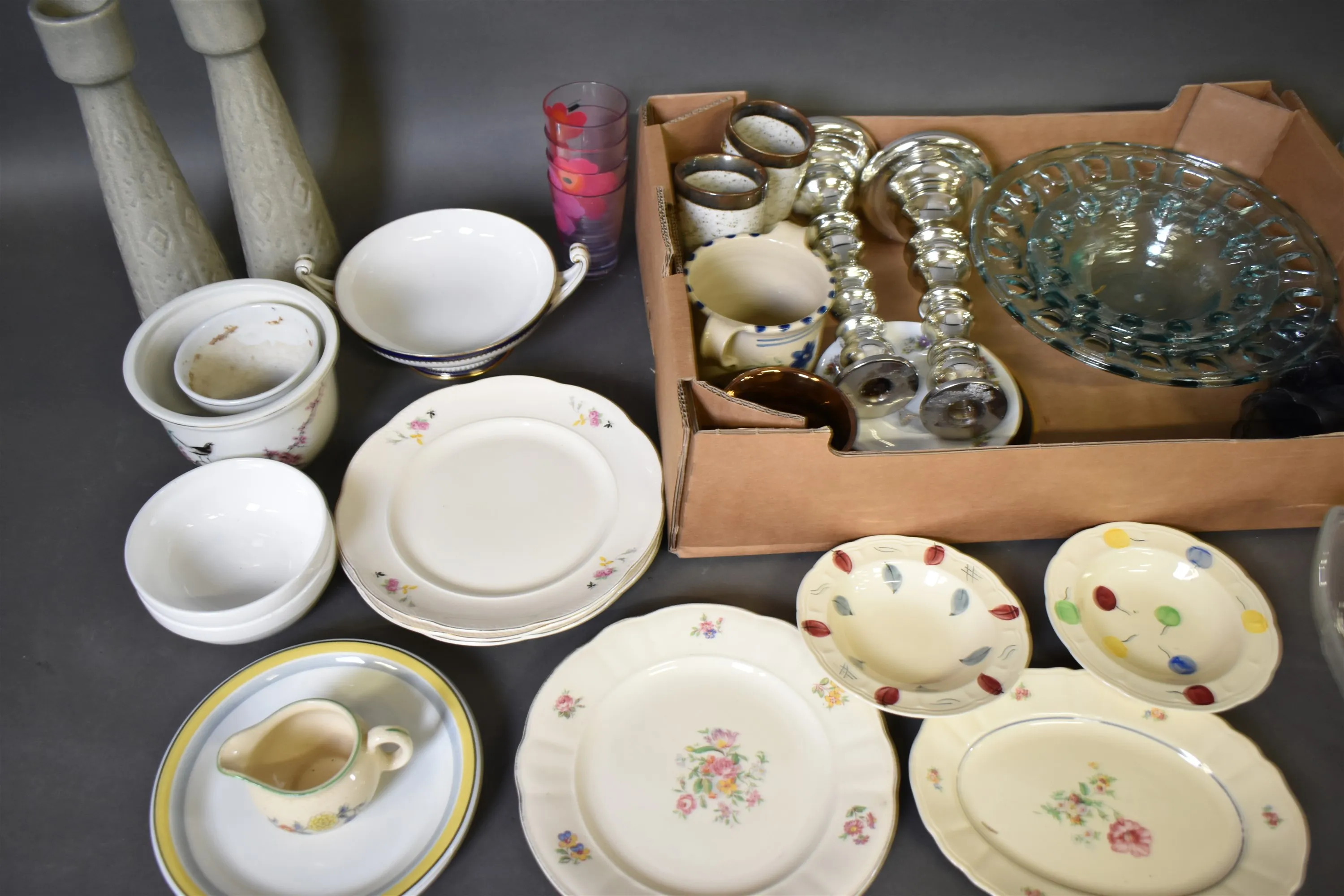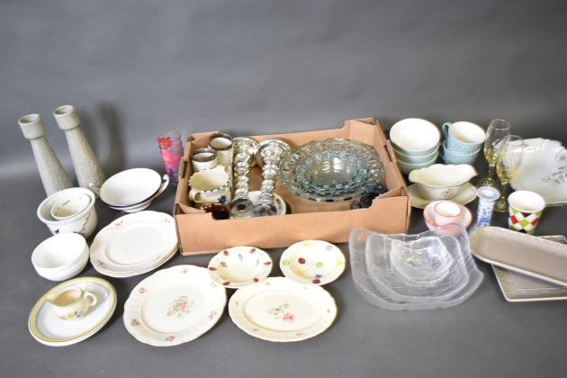 16093. Parti småsaker bl.a ljusstakar högsta 30 cm, 2 lådor