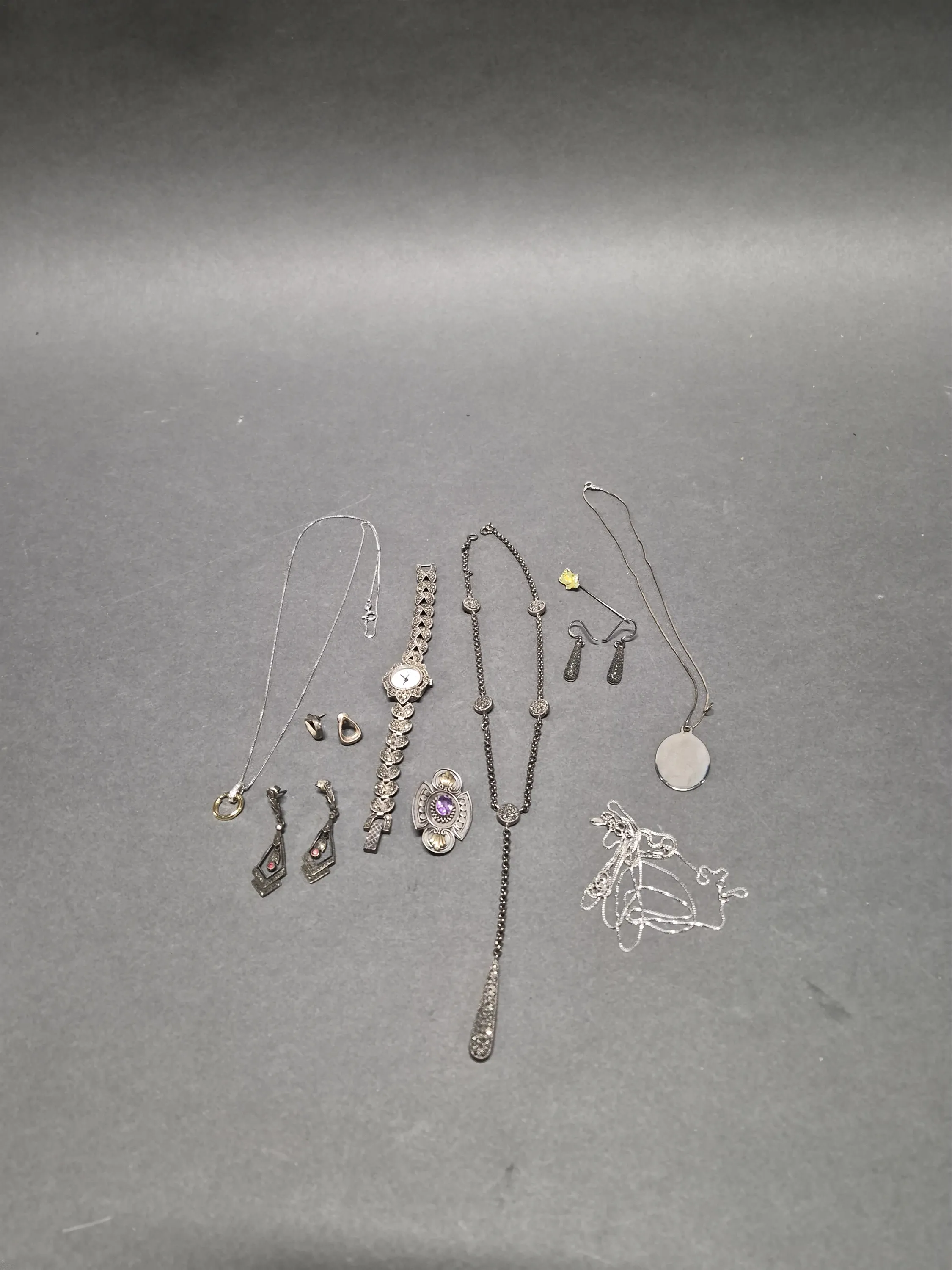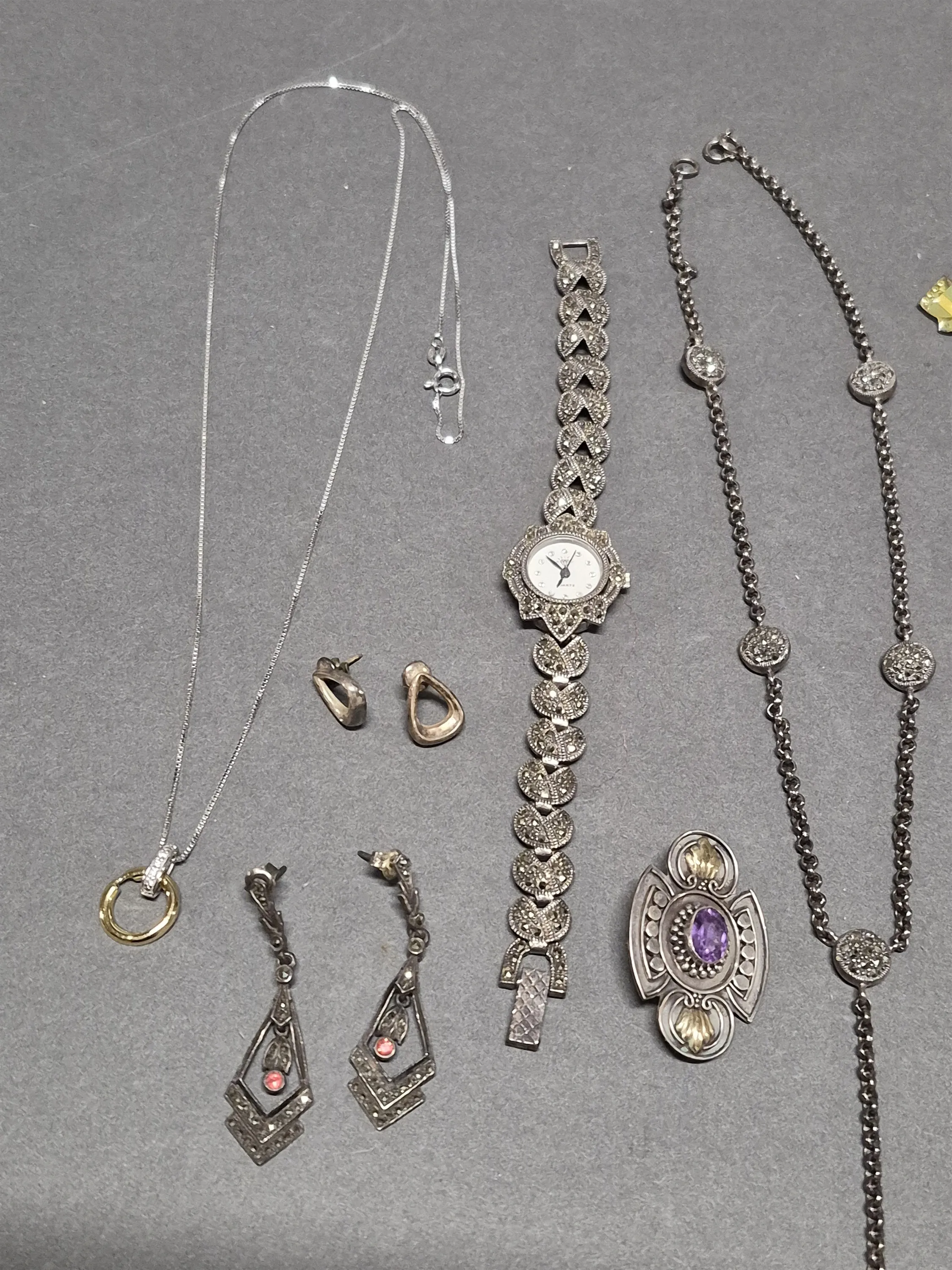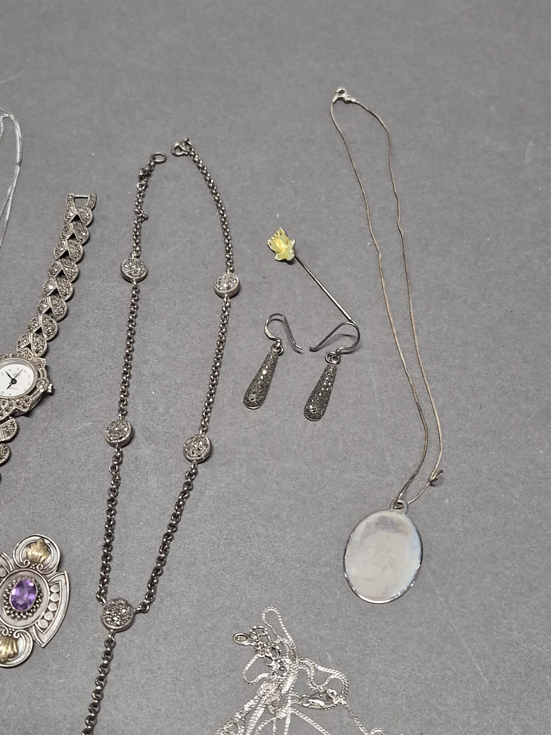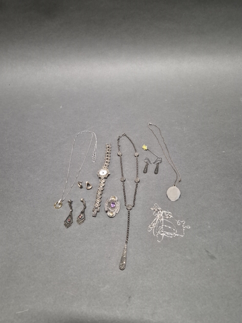 17302. Parti smycken bla silver