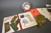4305. Parti sovjetiska föremål bla bordsklocka, fotografier och militära föremål