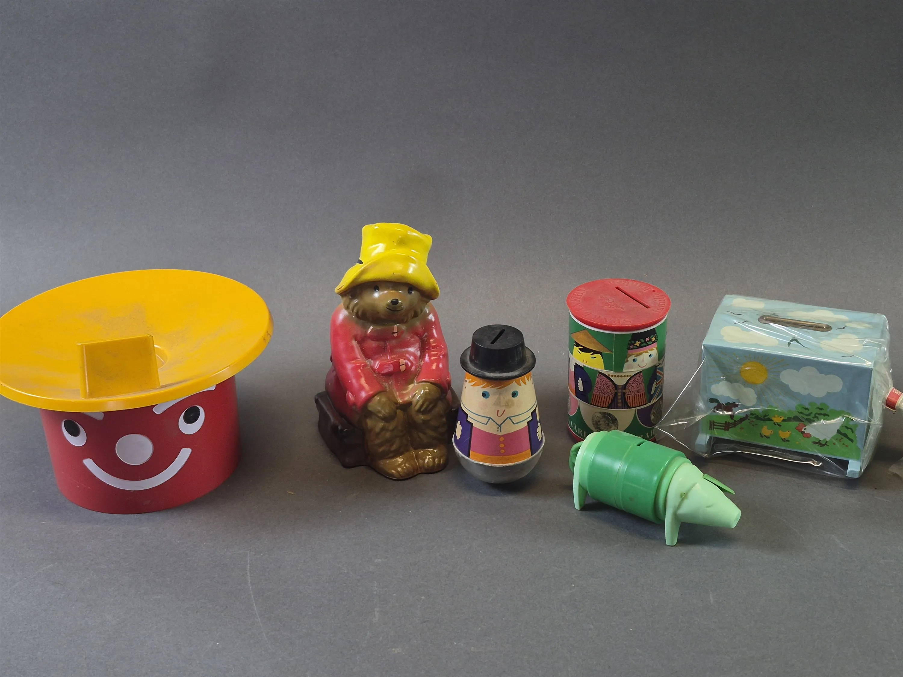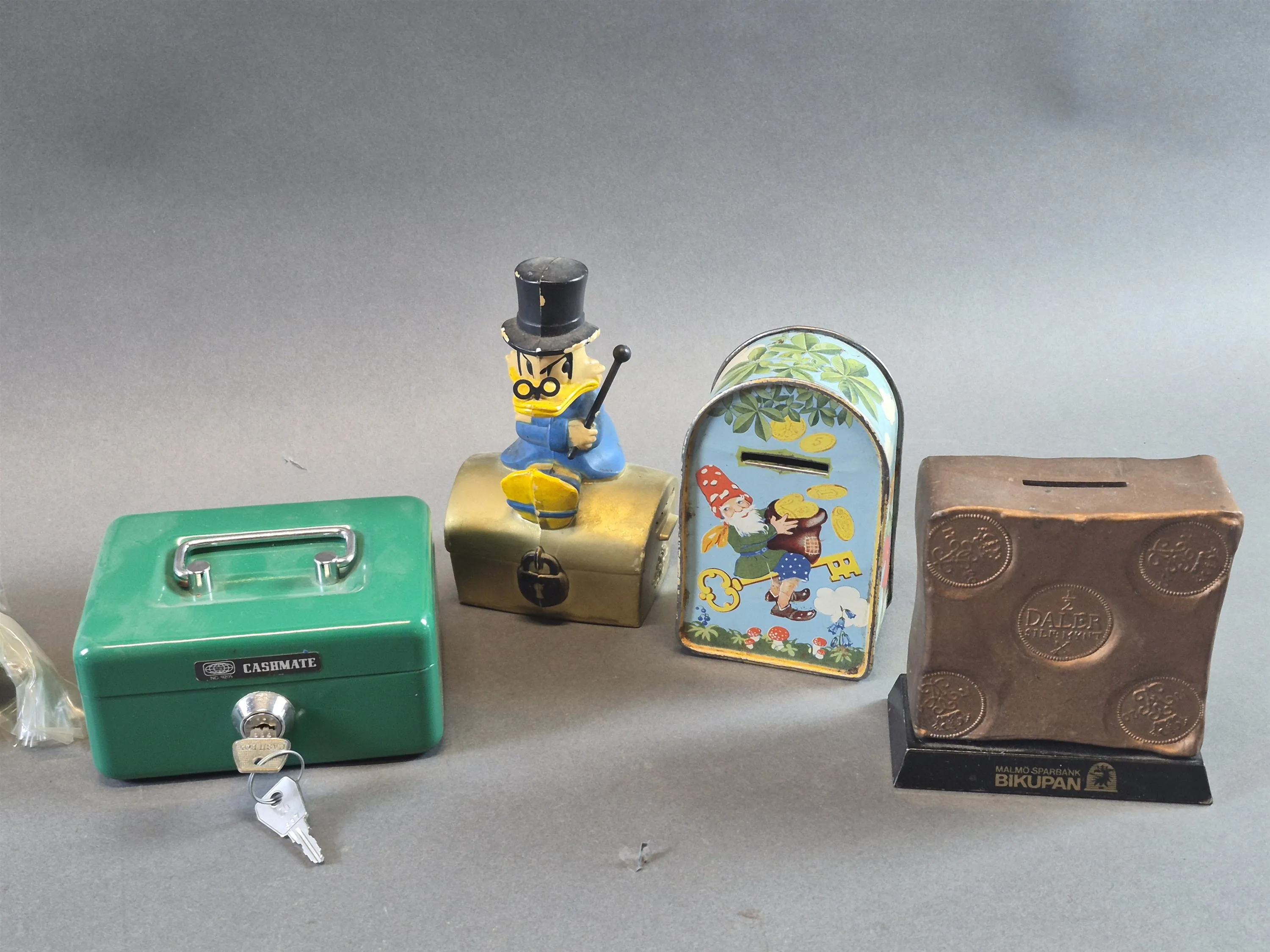 20295. Parti sparbössor bla Malmö Sparbank, högsta höjd 16 cm