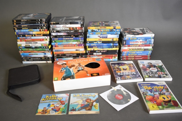 13158. Parti spel till PC och Nintendo Wii bla Active 2 & PacMan Party och DVD filmer bla Snabba Cash & Harry Potter