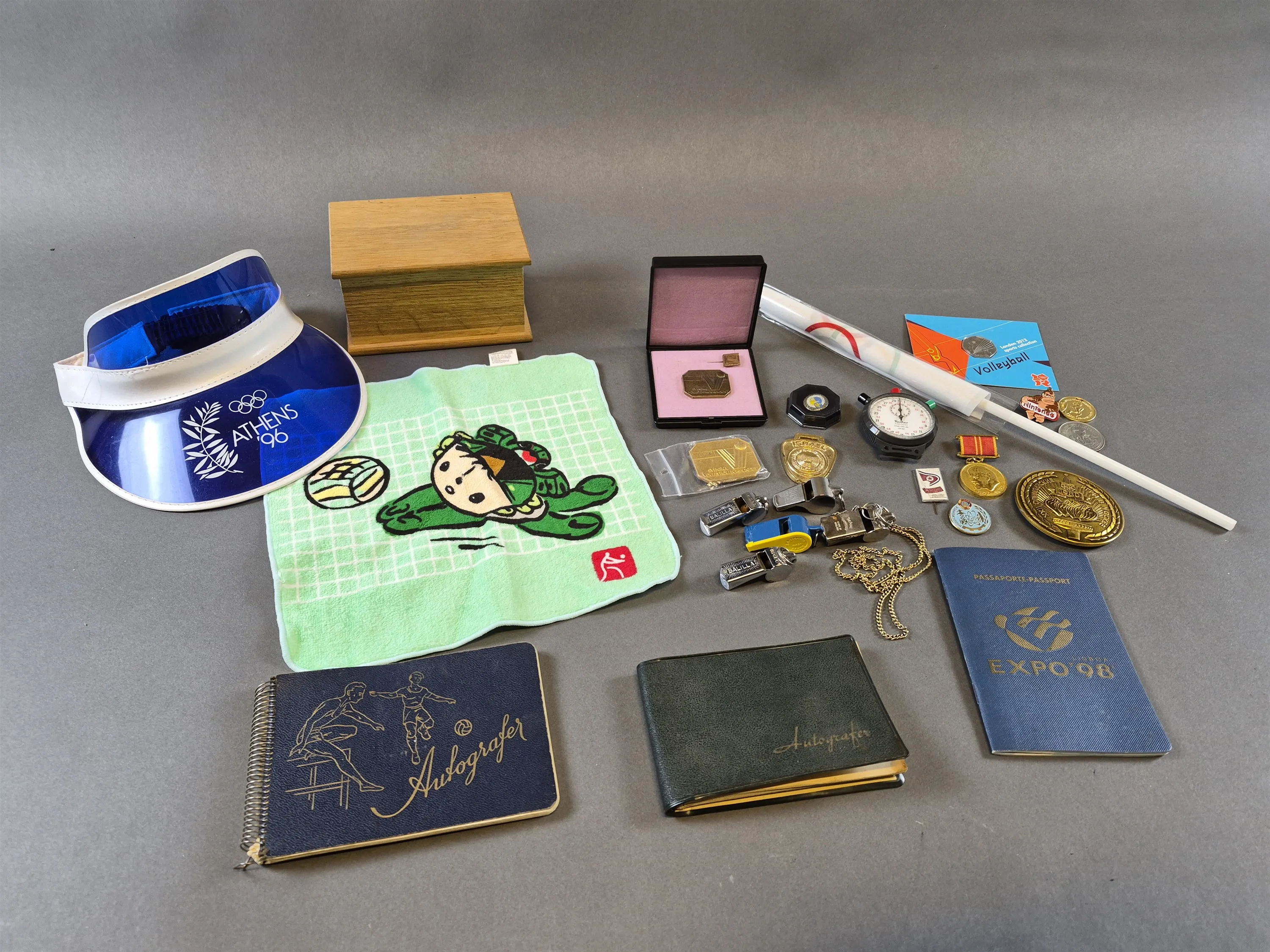 20127. Parti sportsamlarsaker bla autografblock, visselpipor, och pins