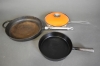 62. Parti stekjärn bl.a Sigvard Persson & emaljerad panna med lock längsta 46 cm