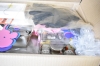 1589. Parti sytillbehör bla sytråd och textilier, längsta mått på bild 59 cm, 2 lådor