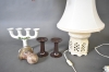 1915. Parti taklampa, bordslampa, ljusstakar & väggvas