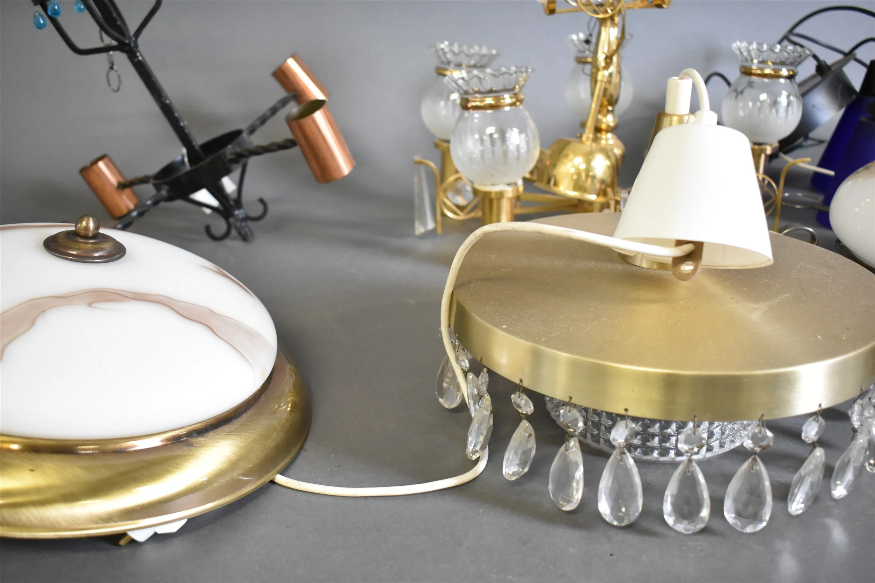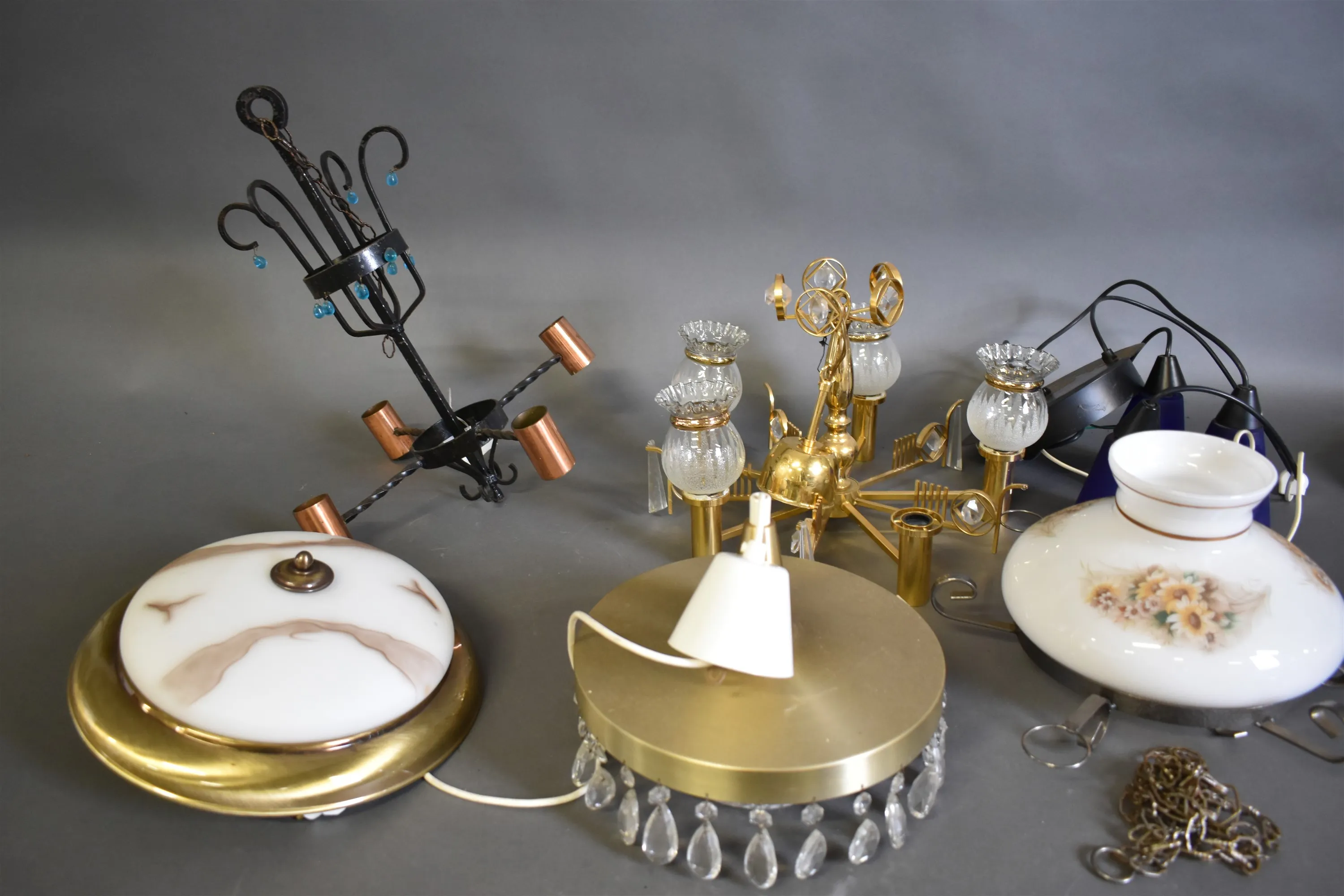 15600. Parti taklampor och ljuskrona, högsta höjd 49 cm