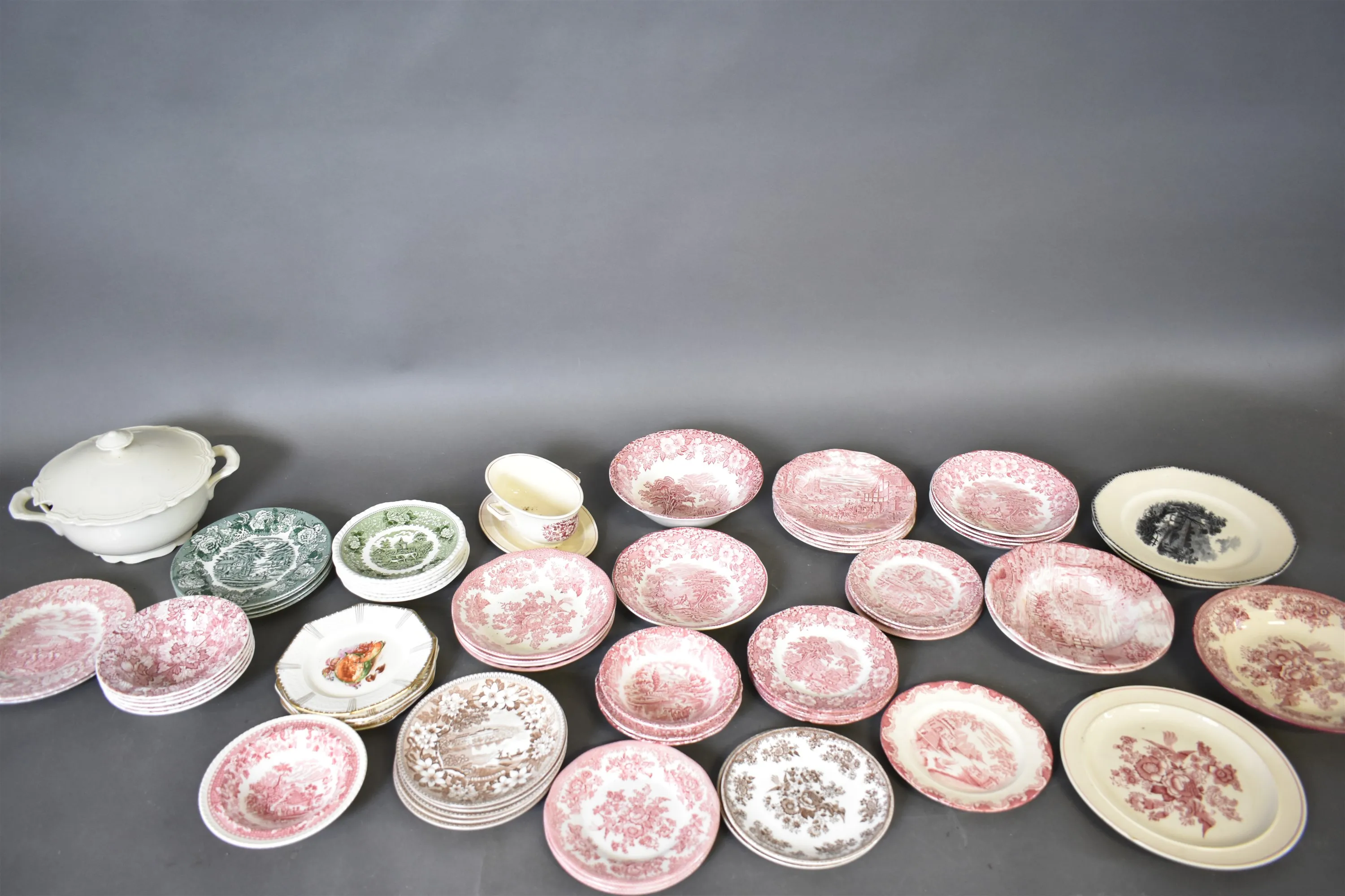 14759. Parti tallrikar & bärassietter, terrin största diameter 26 cm