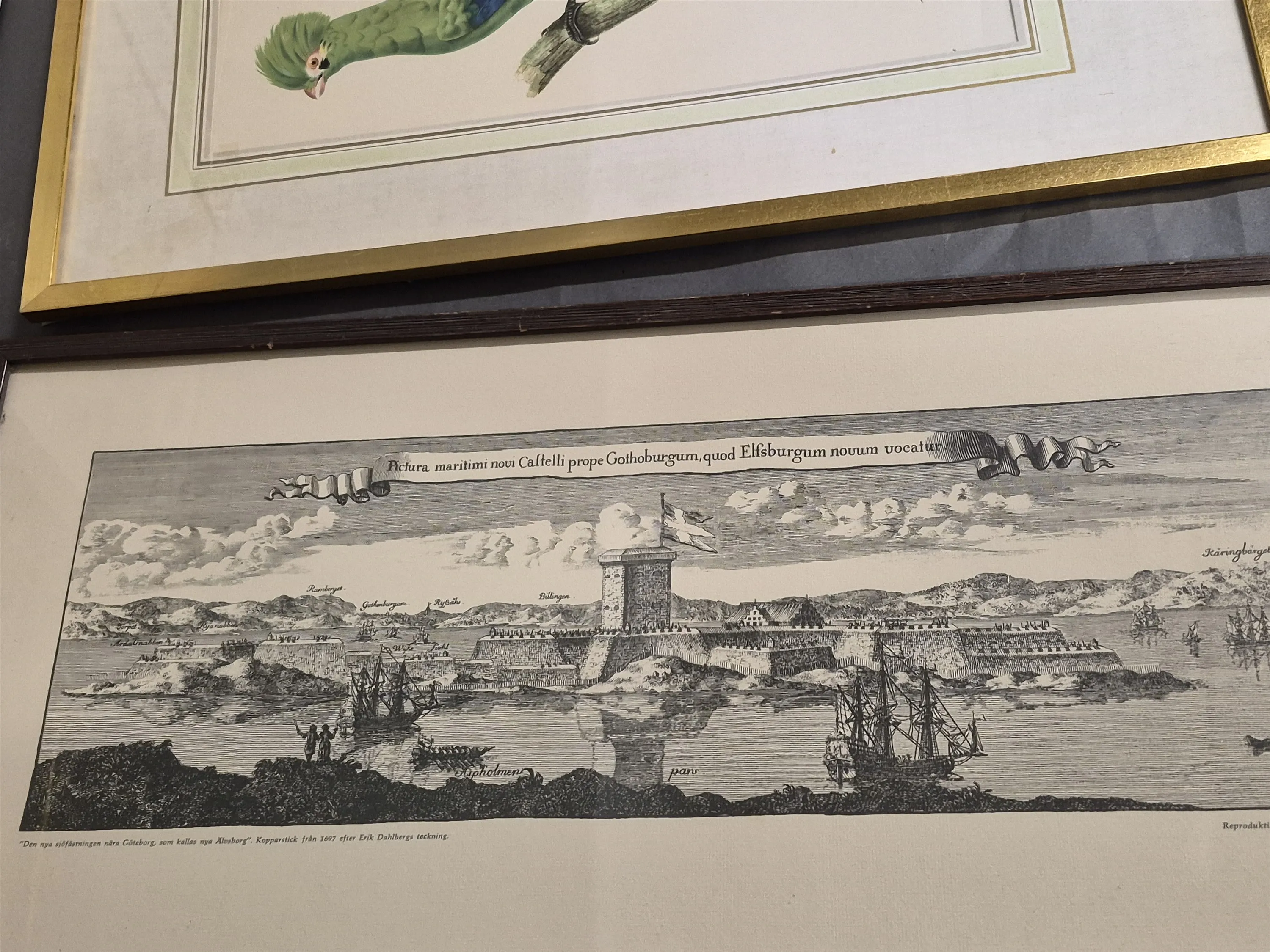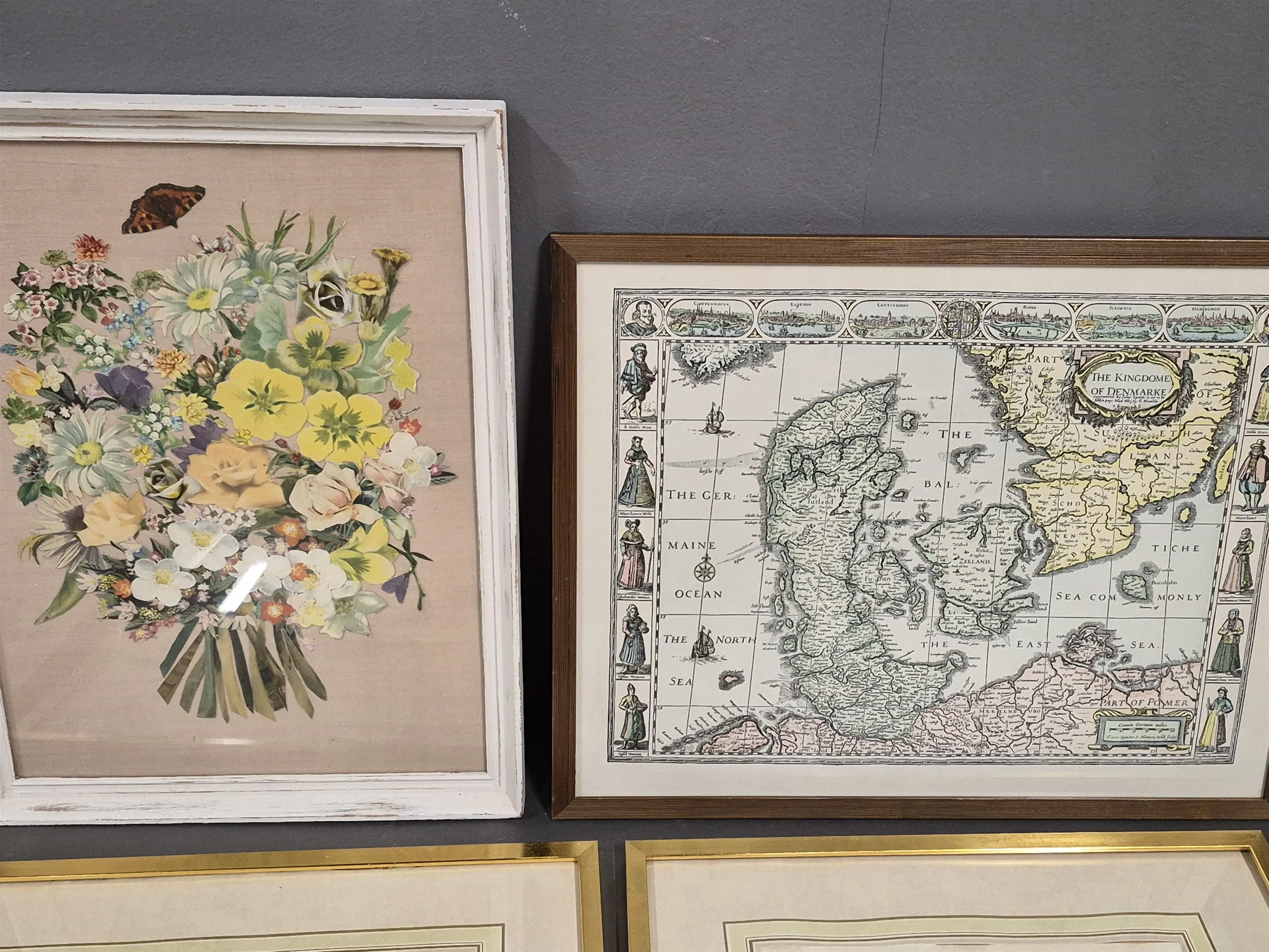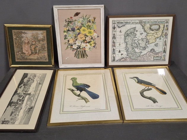 18595. Parti tavlor bl.a fågelmotiv & kartreproduktioner största mått 41 x 51 cm