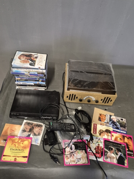 19603. Parti teknik & DVD filmer, skivspelare & DVD spelare största mått 28 x 32 cm, höjd 17 cm