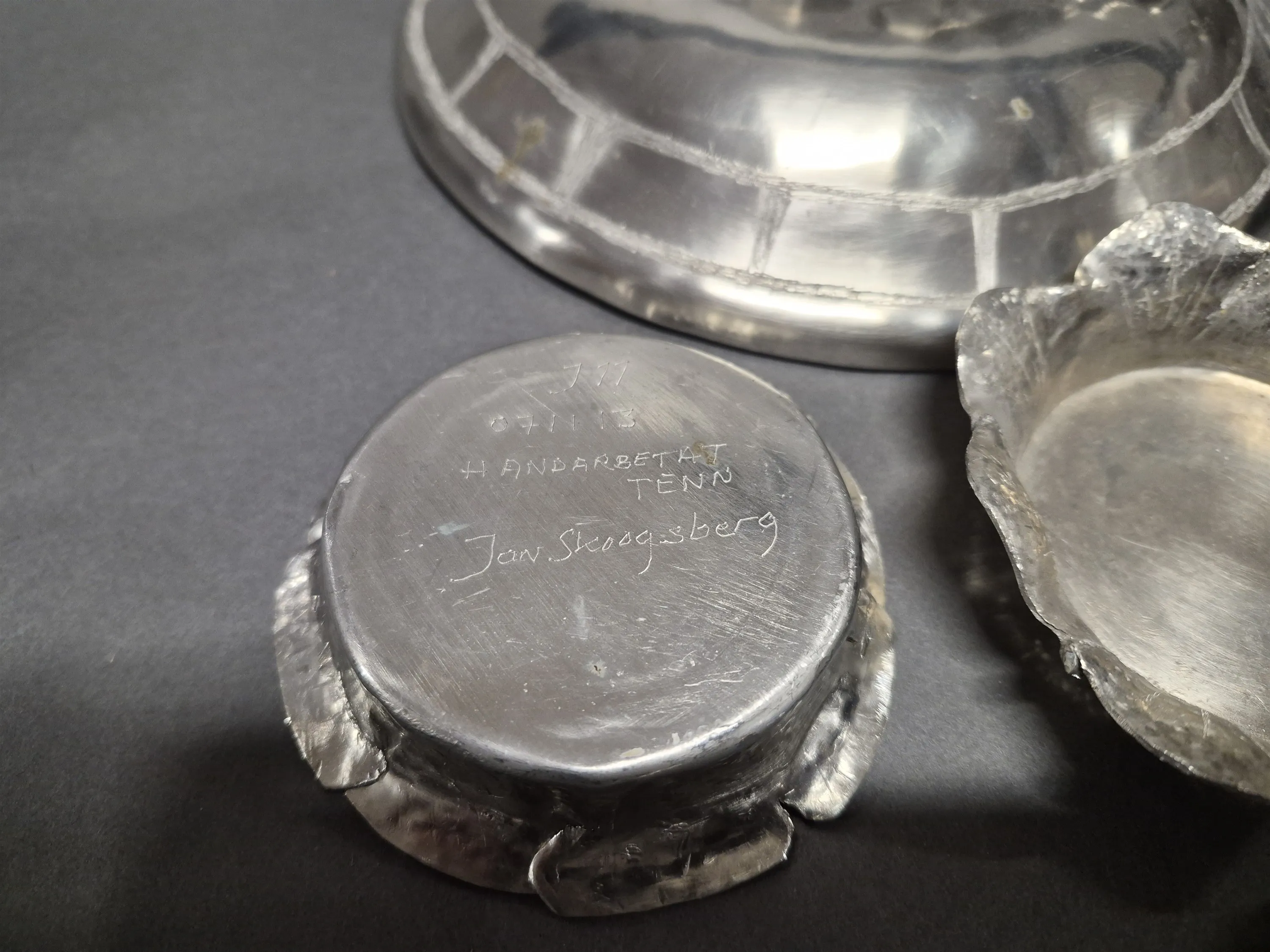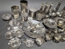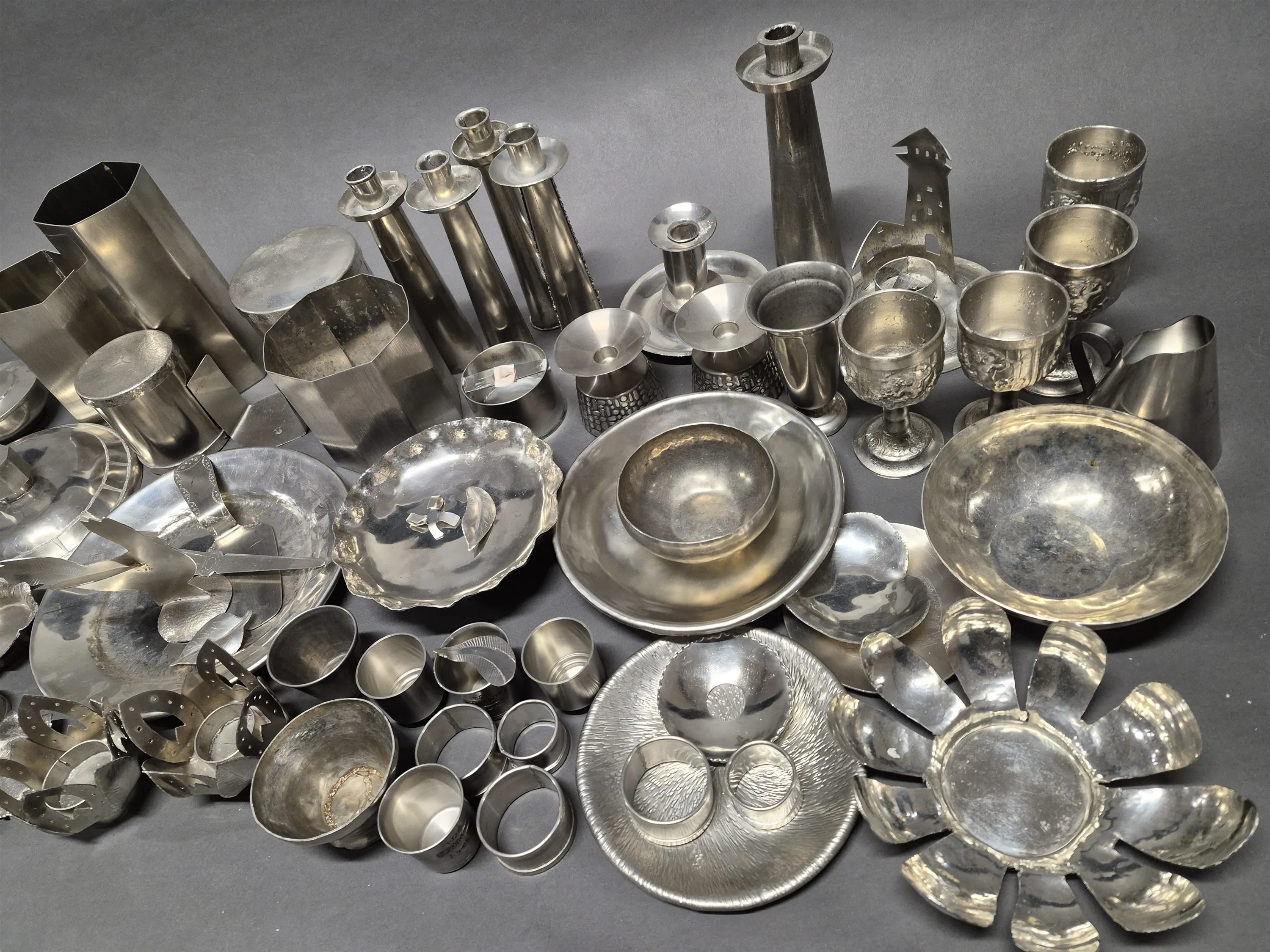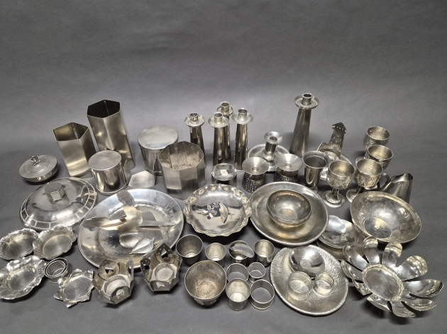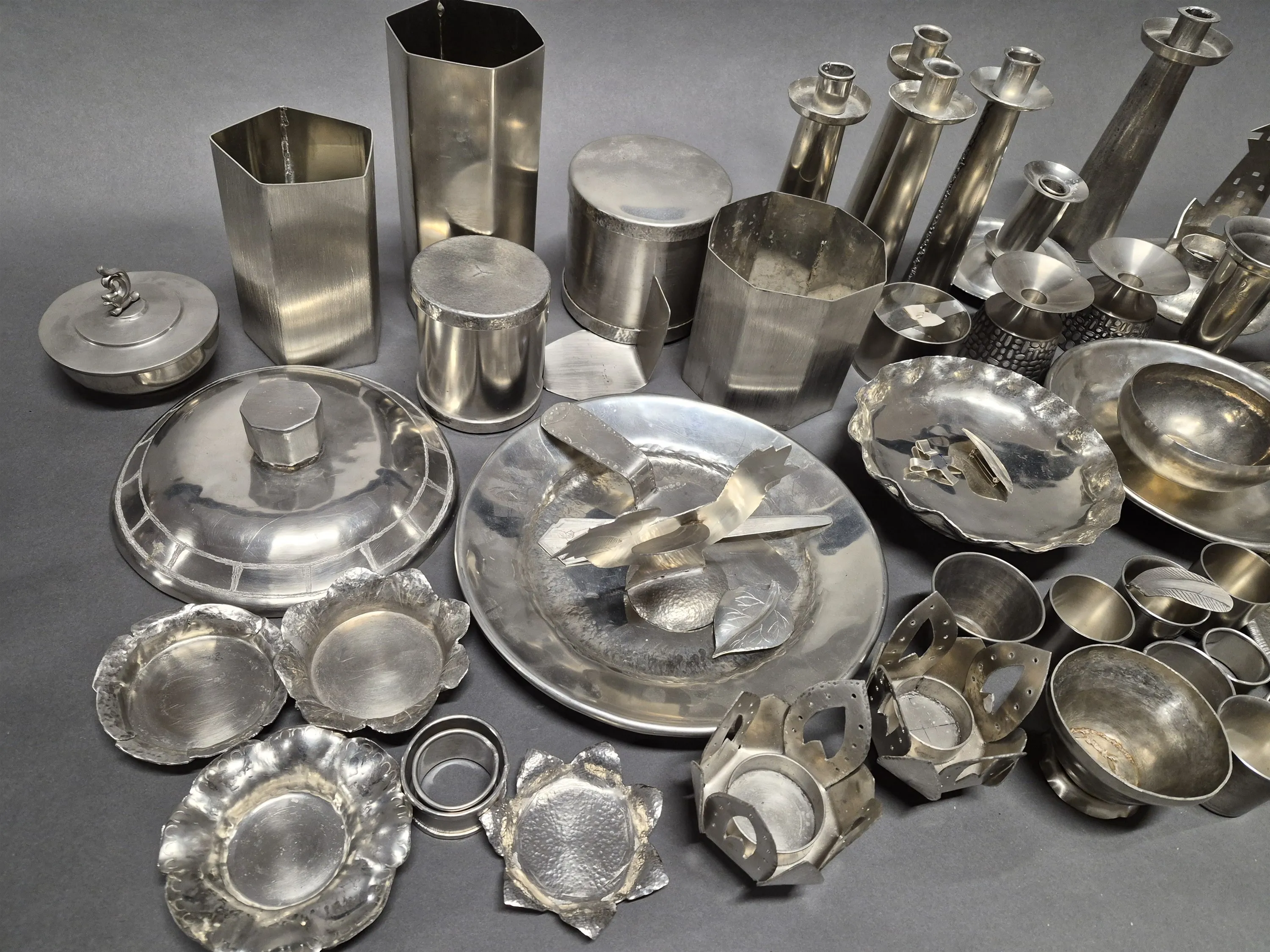 17912. Parti tenn, rostfritt och zinkföremål, högsta 23 cm