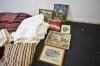 1376. Parti textilier & tavlor bla kuddar & gardin, längsta 200 cm