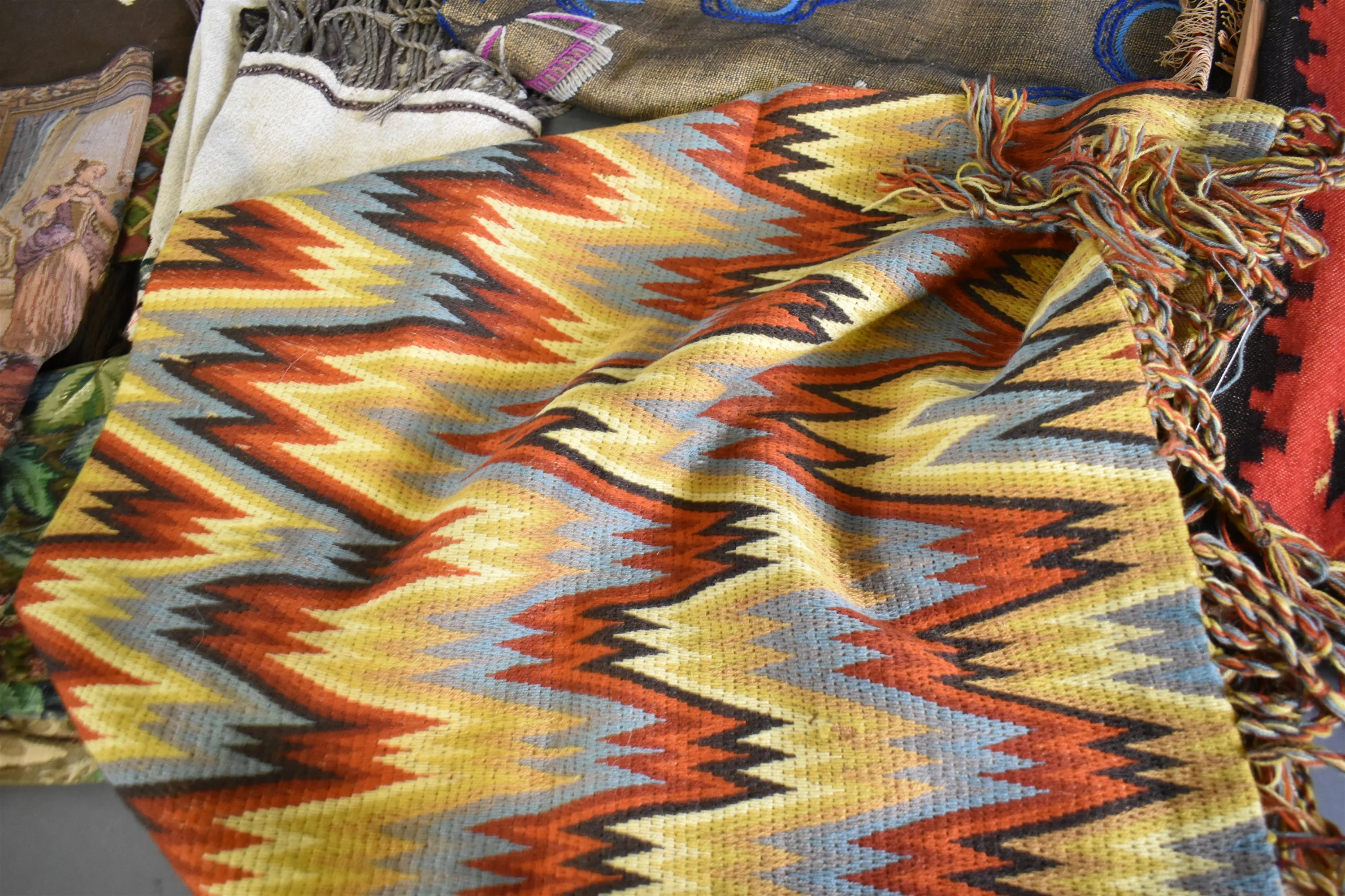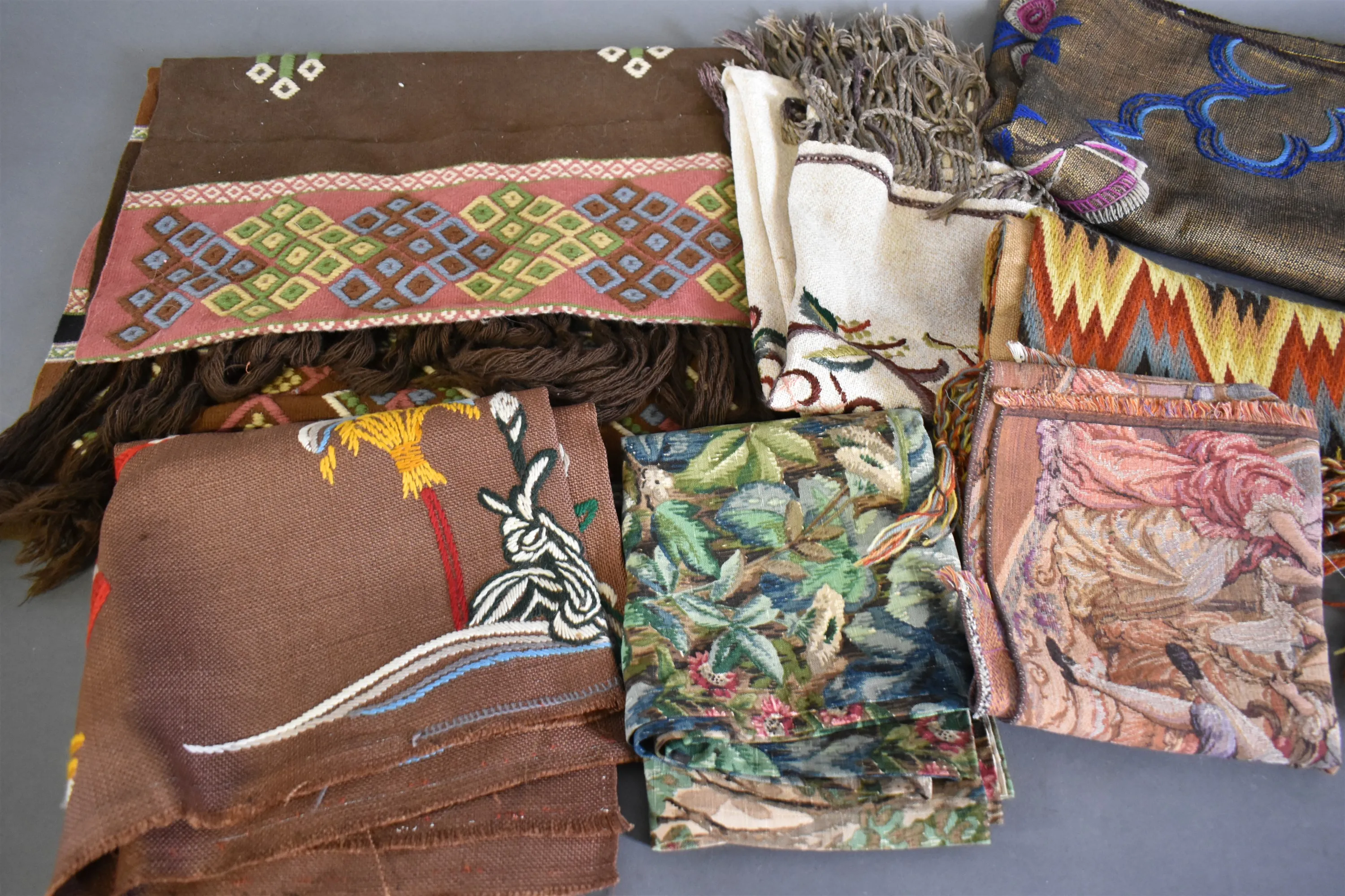 16603. Parti textilier bl.a Allmoge blixtväv