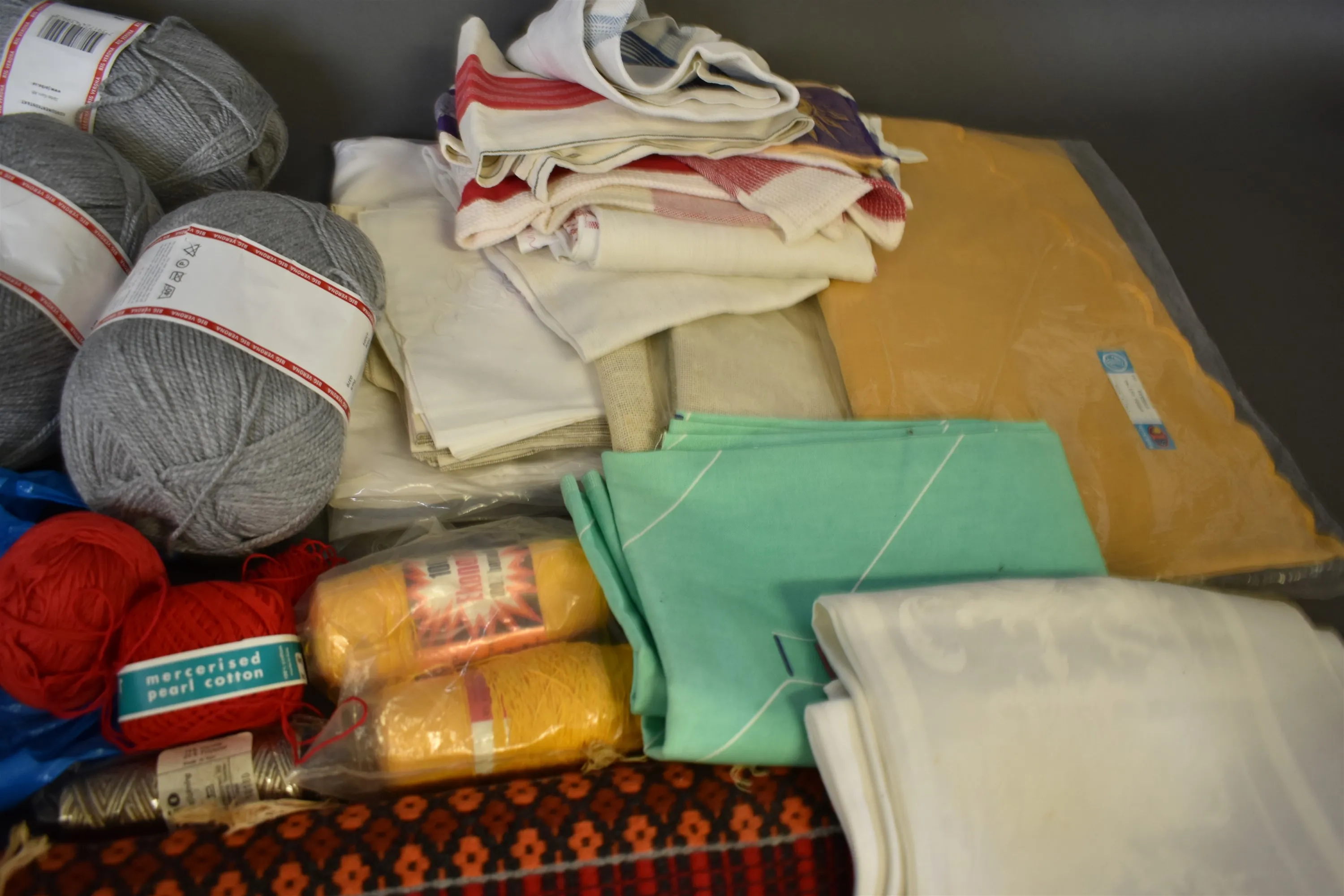 12438. Parti textilier bl.a garner