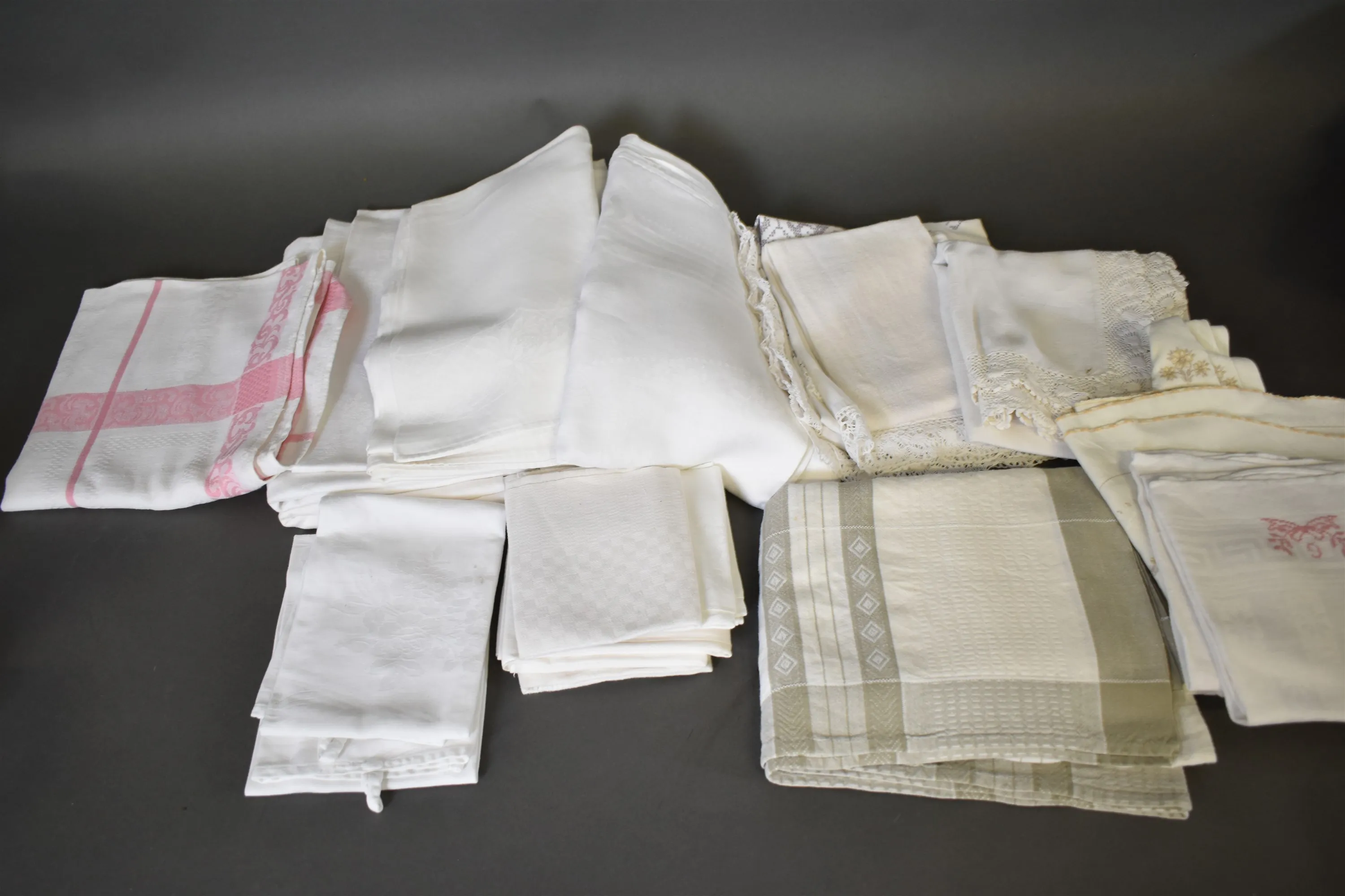 14957. Parti textilier bl.a linnedukar