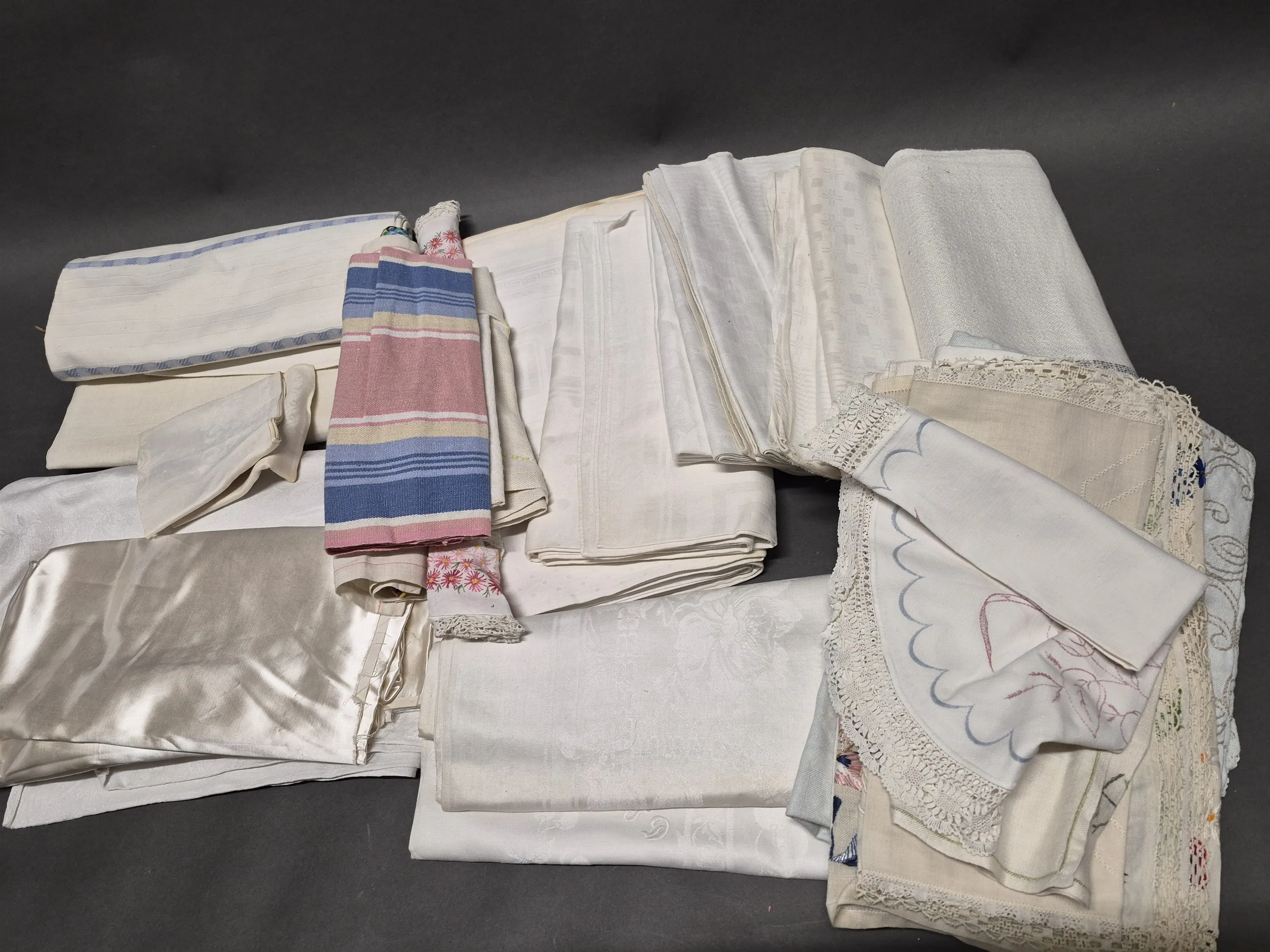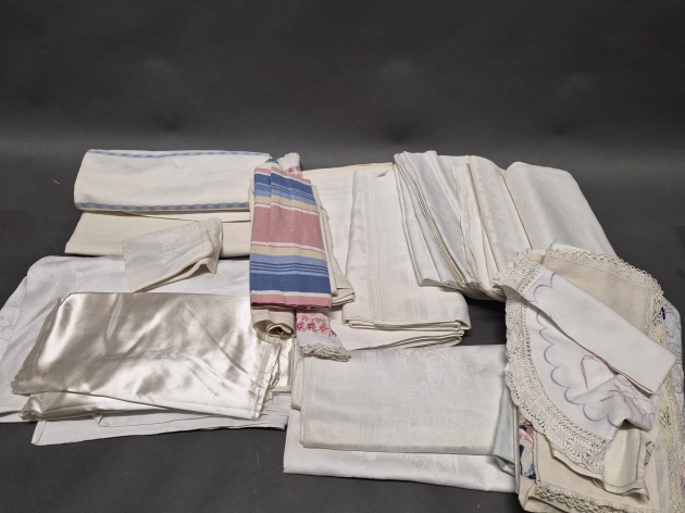 17368. Parti textilier bl.a linnedukar
