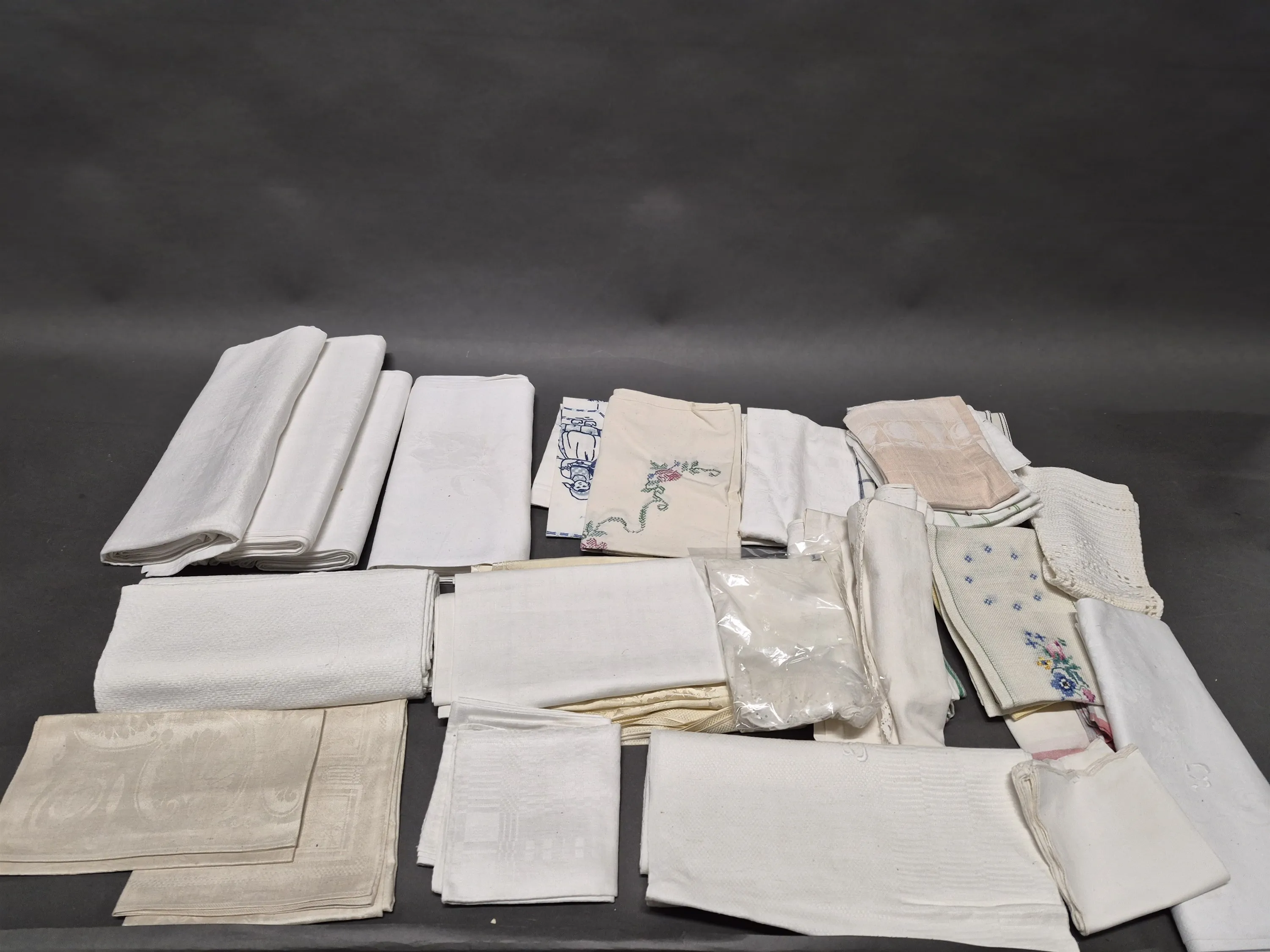 17662. Parti textilier bl.a linnedukar