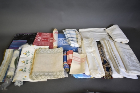 5342. Parti textilier bl.a linnedukar