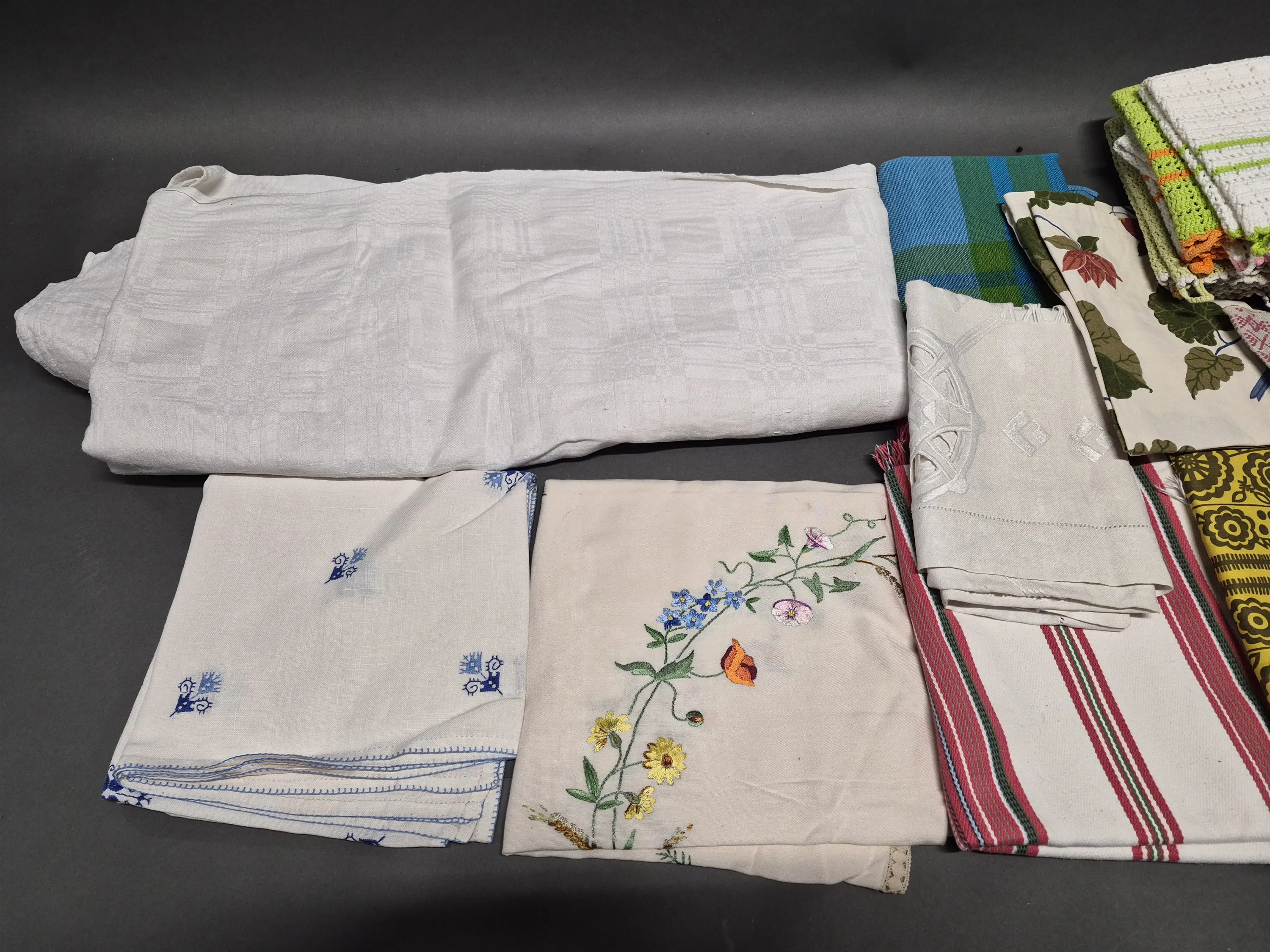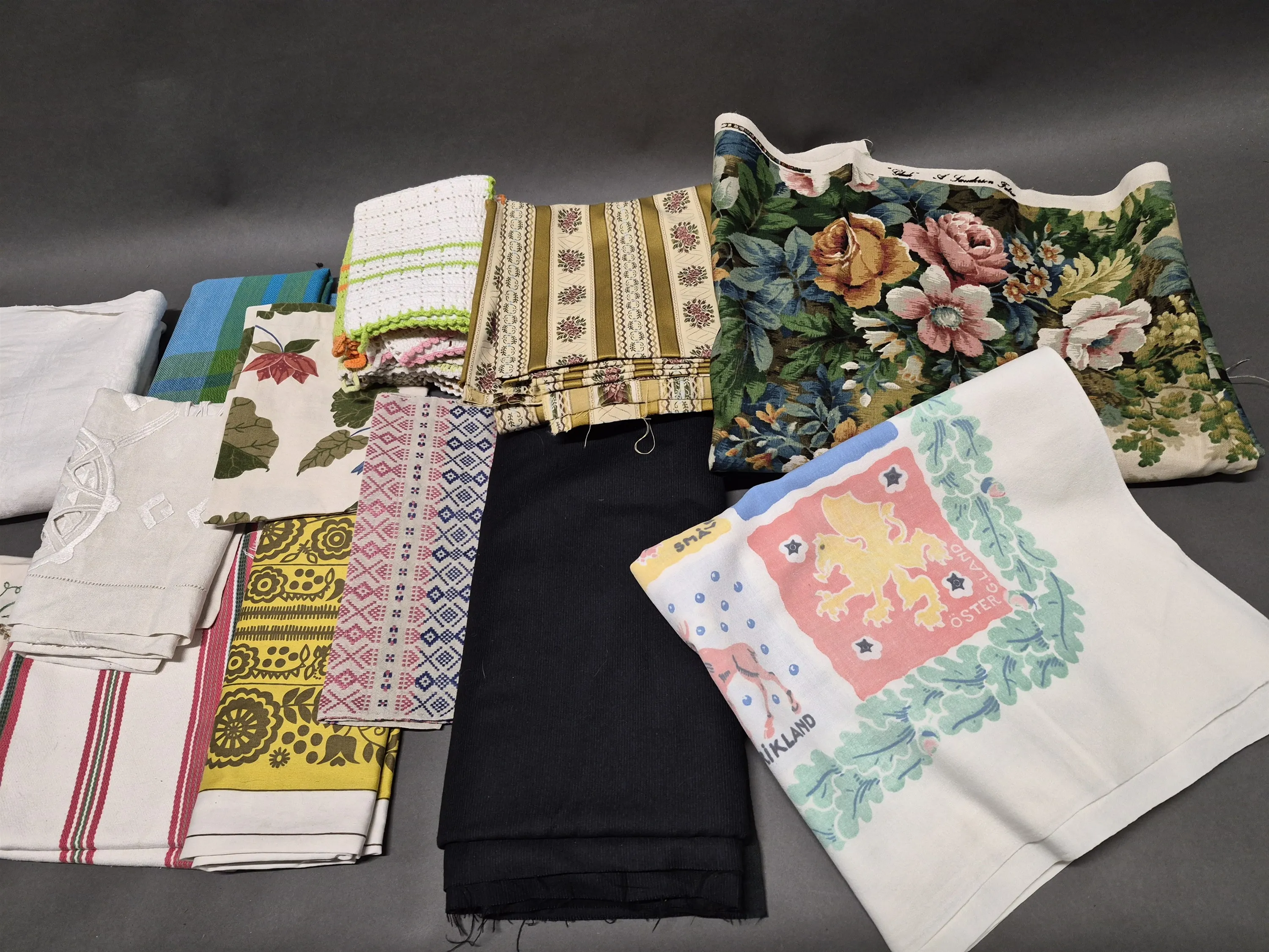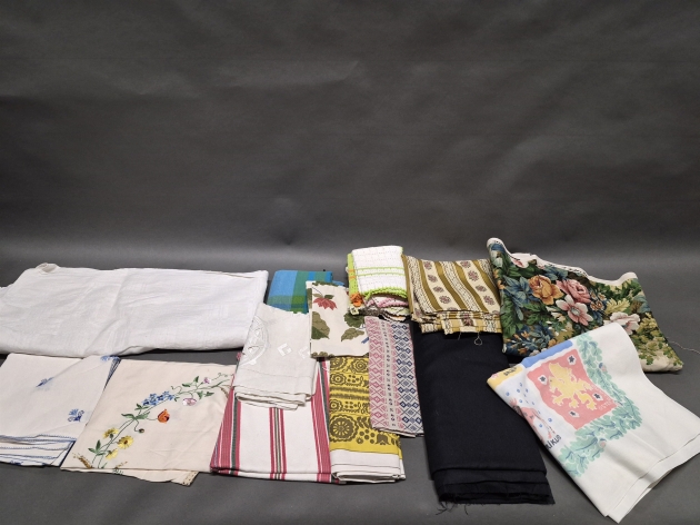 17015. Parti textilier, bl.a möbeltyger, större linneduk