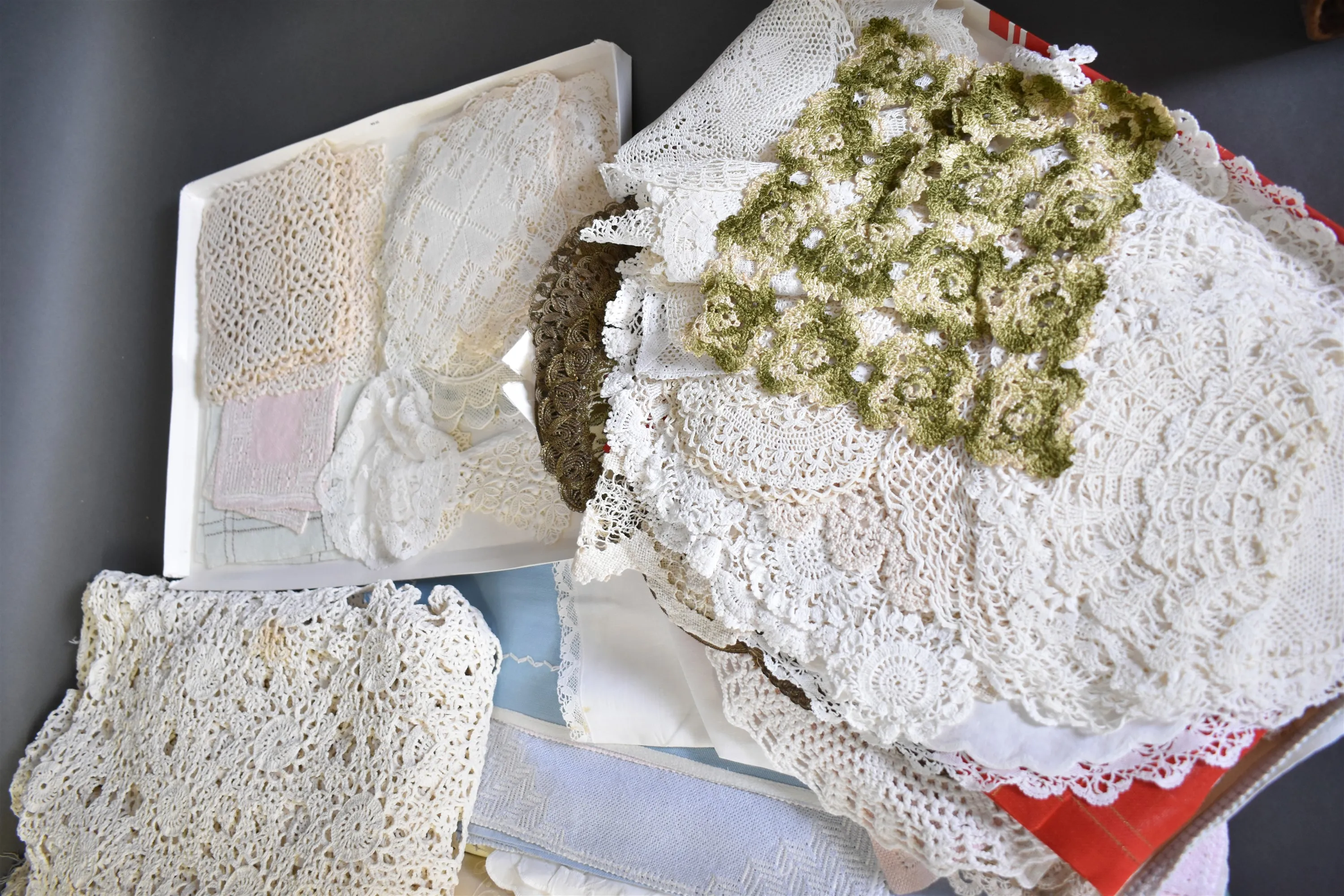 9145. Parti textilier bl.a smådukar