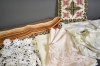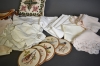 11578. Parti textilier bla dukar, dekorationskudde och trasmatta plast