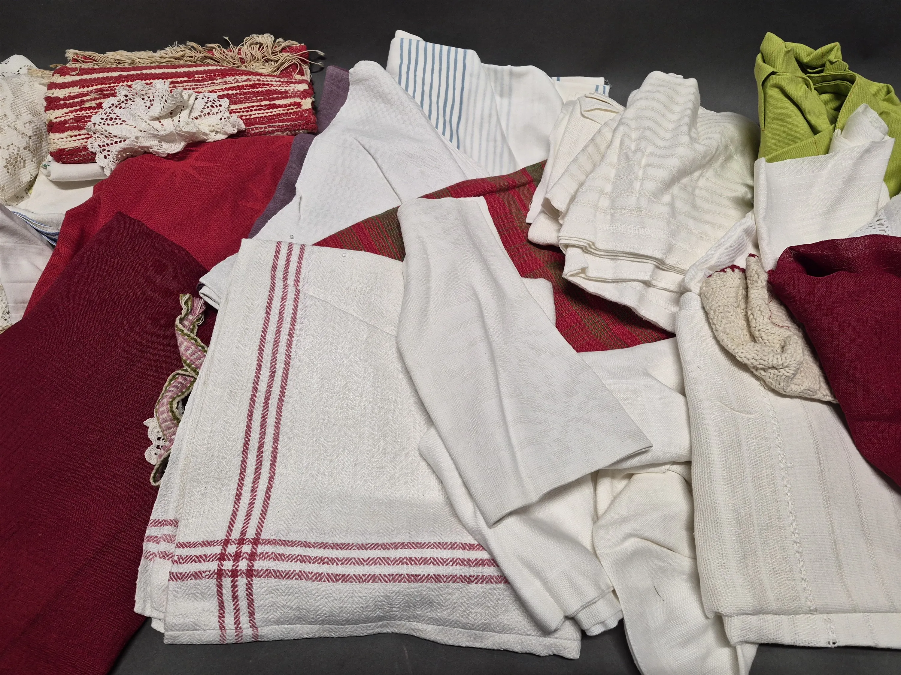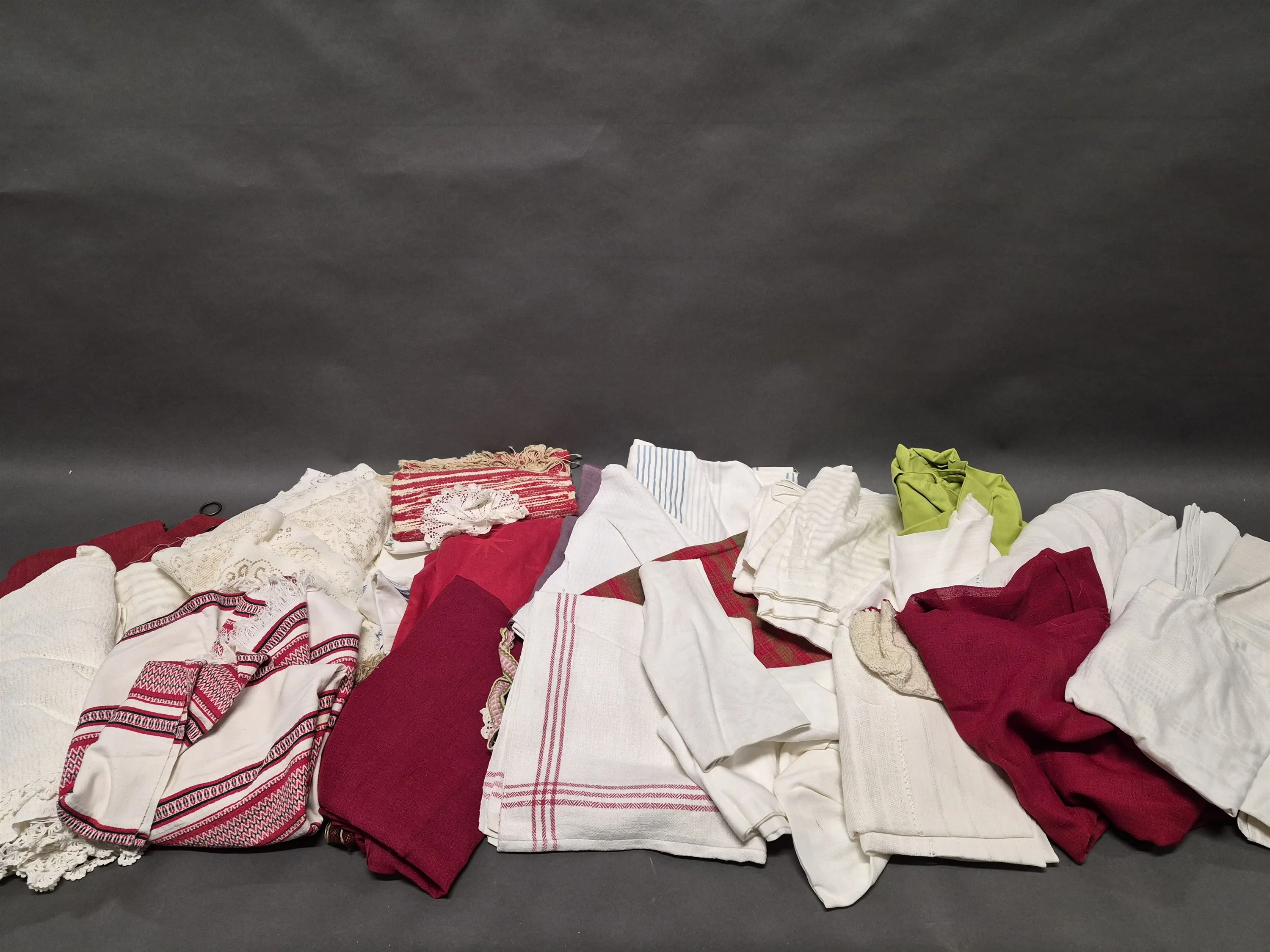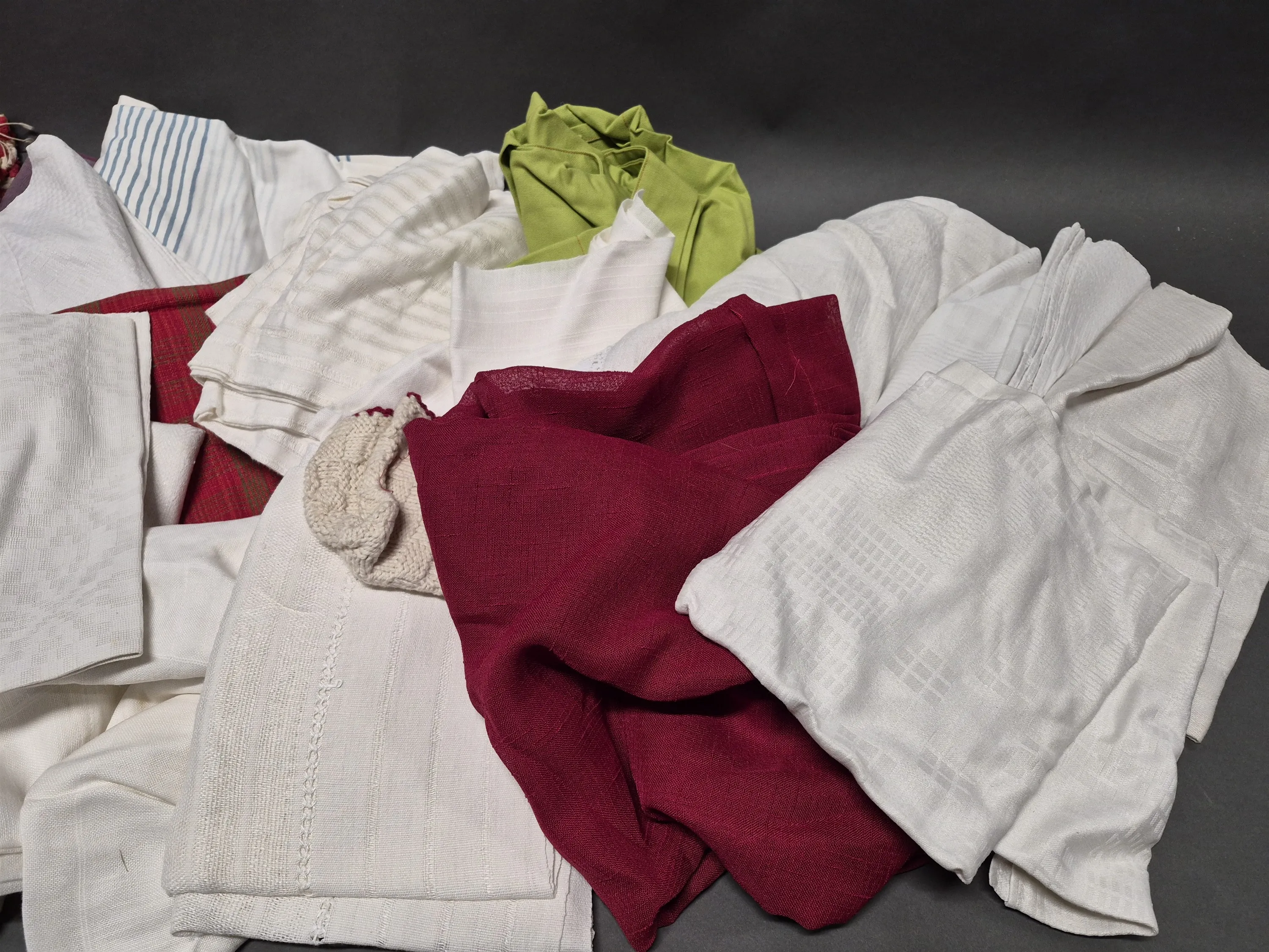 17447. Parti textilier bla dukar, lukt och någon fläck finns