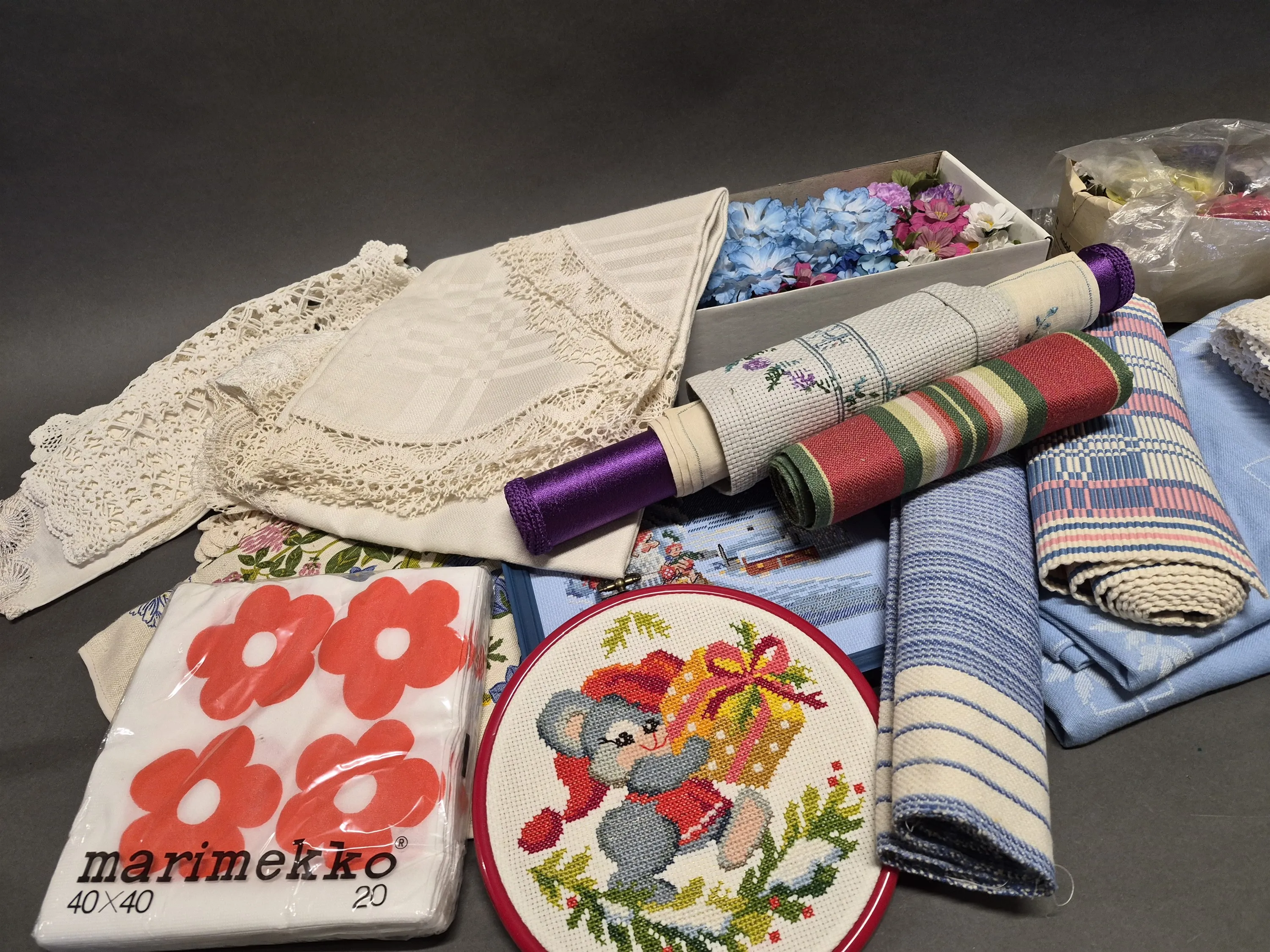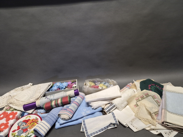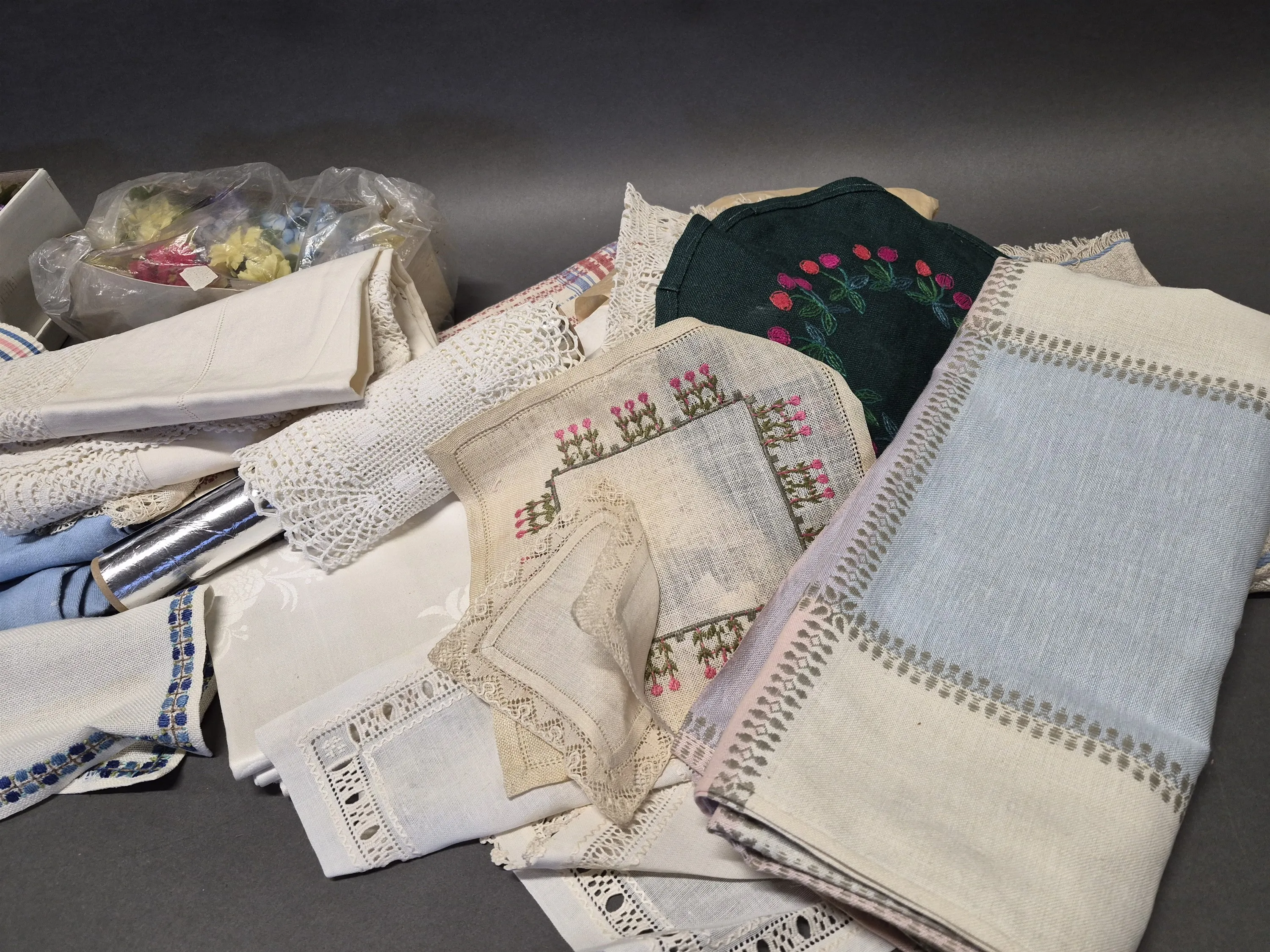 18503. Parti textilier bla dukar, någon fläck finns