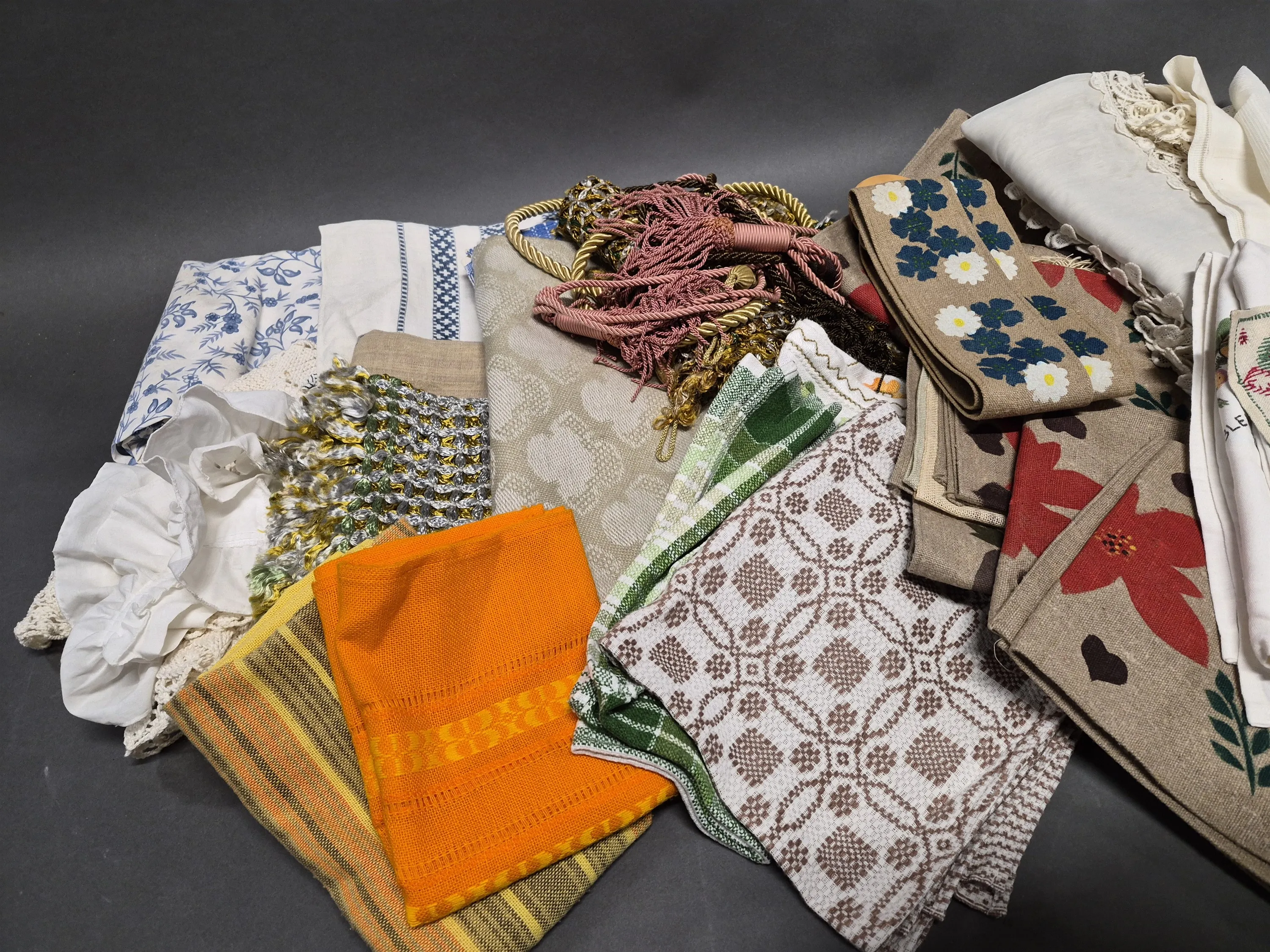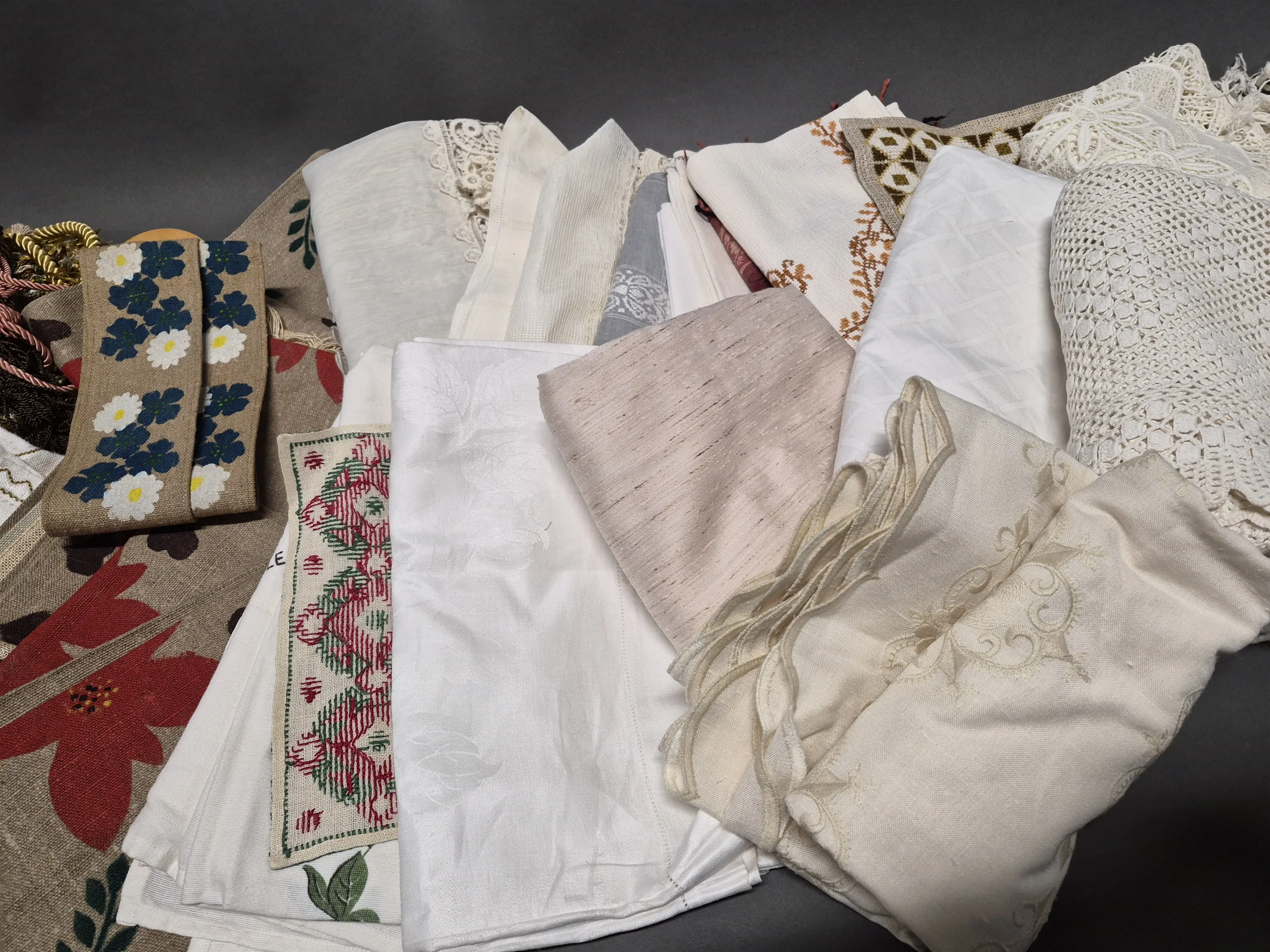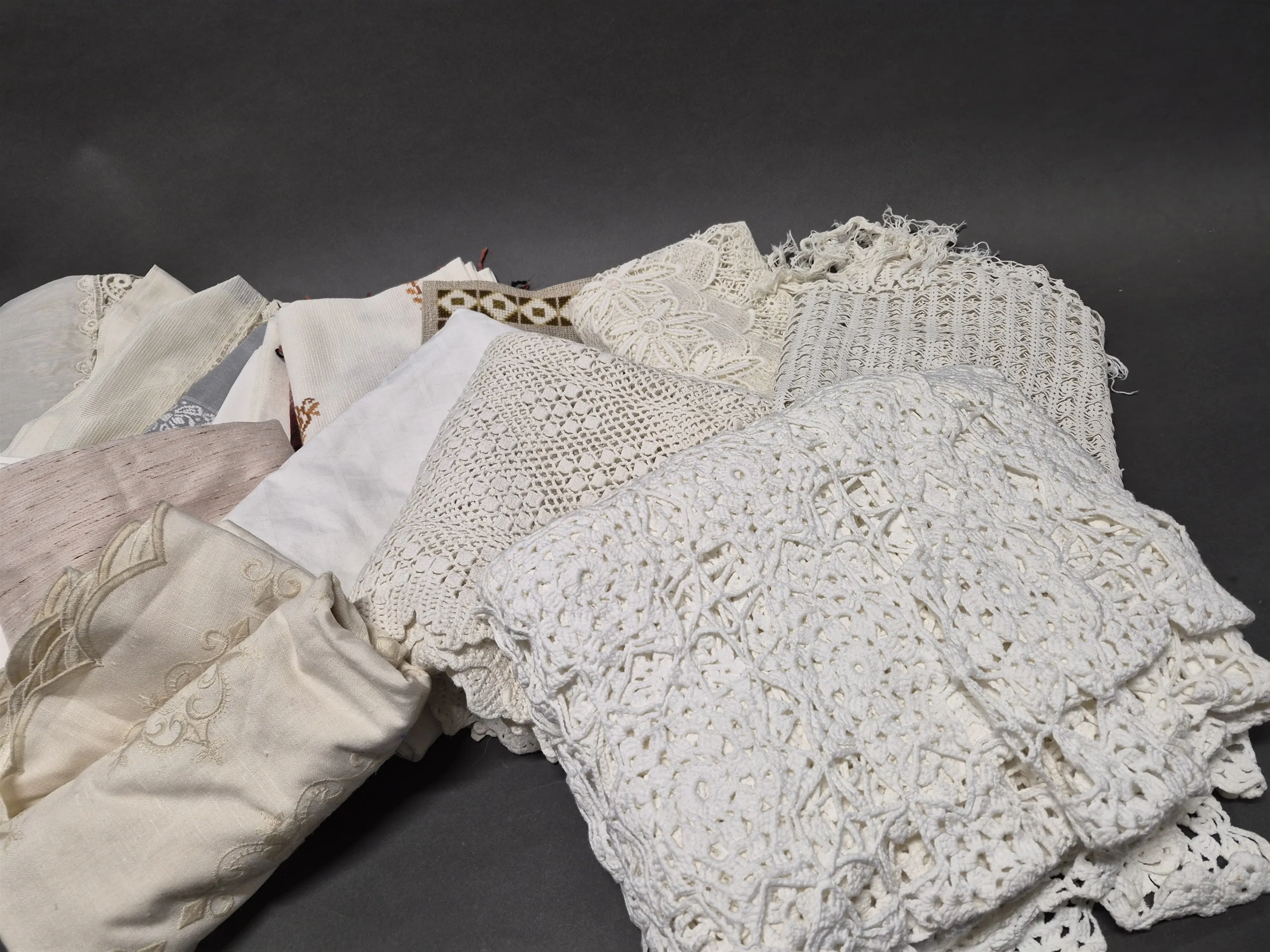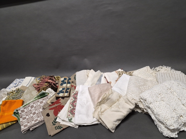 18625. Parti textilier bla dukar och virkat, någon fläck/missfärgning finns