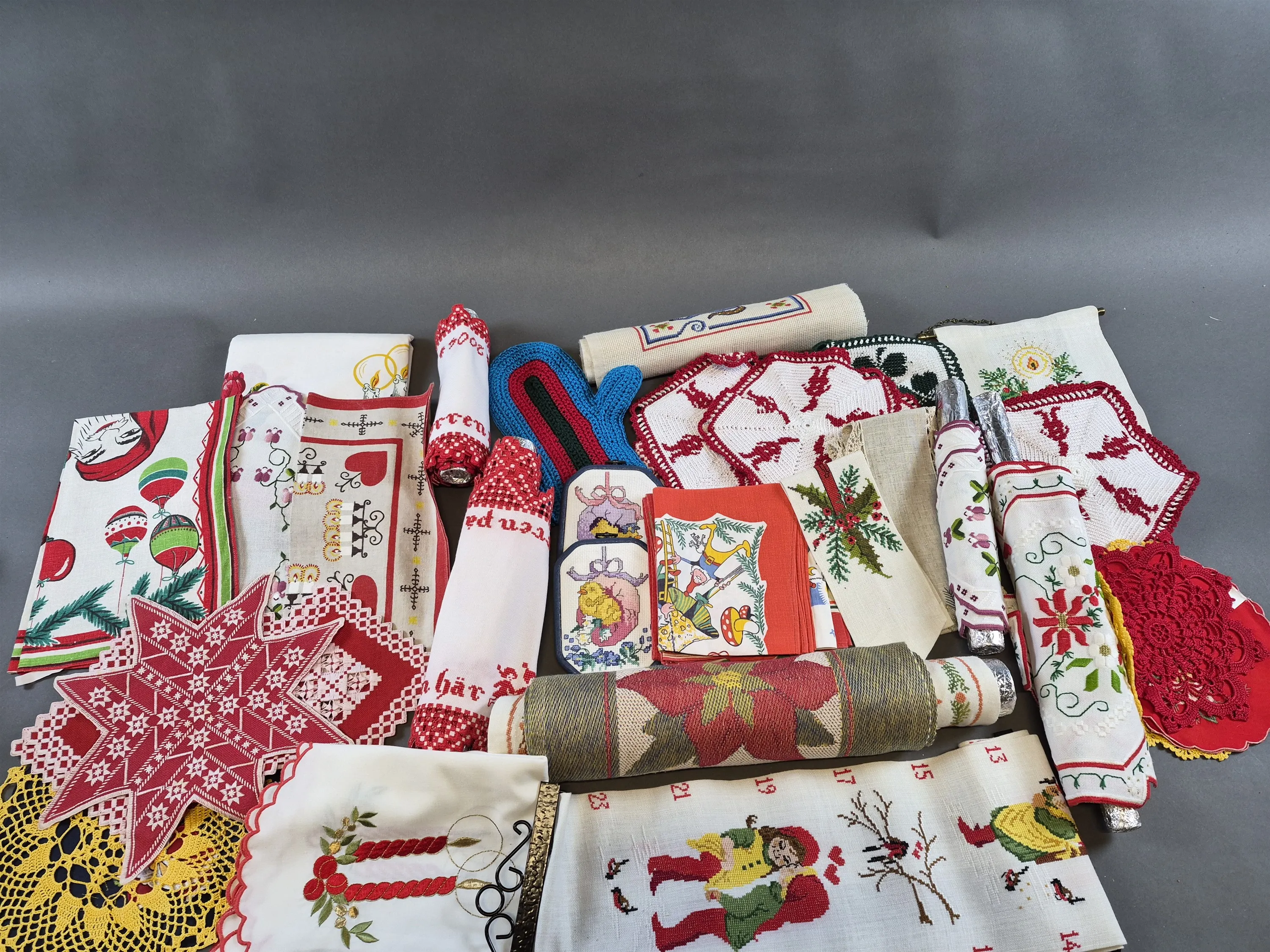 20415. Parti textilier, dukar & bonader, broderi