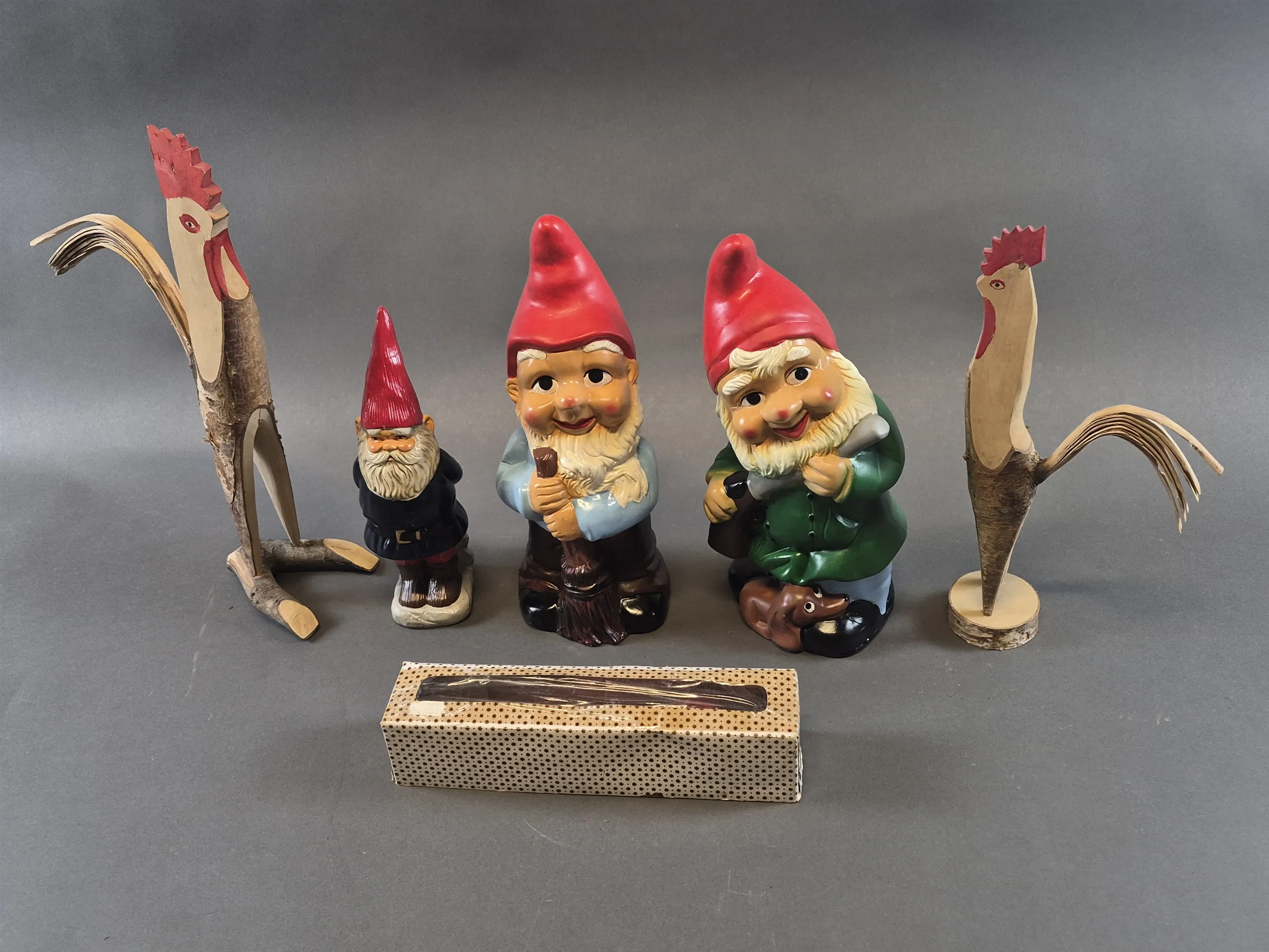 20311. Parti tomtar keramik, spira i låda & trätuppar högsta 44 cm
