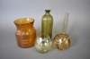 7493. Parti tonat glas 5 delar bla Orrefors och E.Höglund H732/180, brun vas signerad M Studio 96 högsta höjd 27 cm
