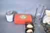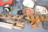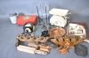 421. Parti trä & metallföremål bl.a köksvåg, största mått 34 cm