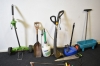 140. Parti trädgårdsredskap bl.a gödningsspridare & ishacka, längsta 37 cm