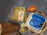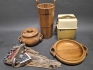 19556. Parti träföremål & picknicklåda Taffel högsta 51 cm