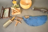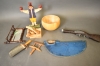 12216. Parti träföremål & pistolatrapp, högsta 38 cm