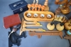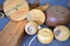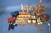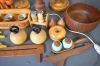 2407. Parti träföremål, bl.a teak skål & ljusstakar furu högsta 45 cm