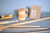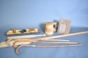 11046. Parti träföremål bla åra och käpp med silvermontage, längsta mått 144 cm