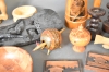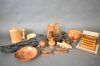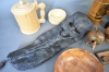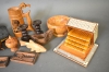 9249. Parti träföremål bla cigarettskrin och vägglampa med religös figur, längsta mått 48 cm