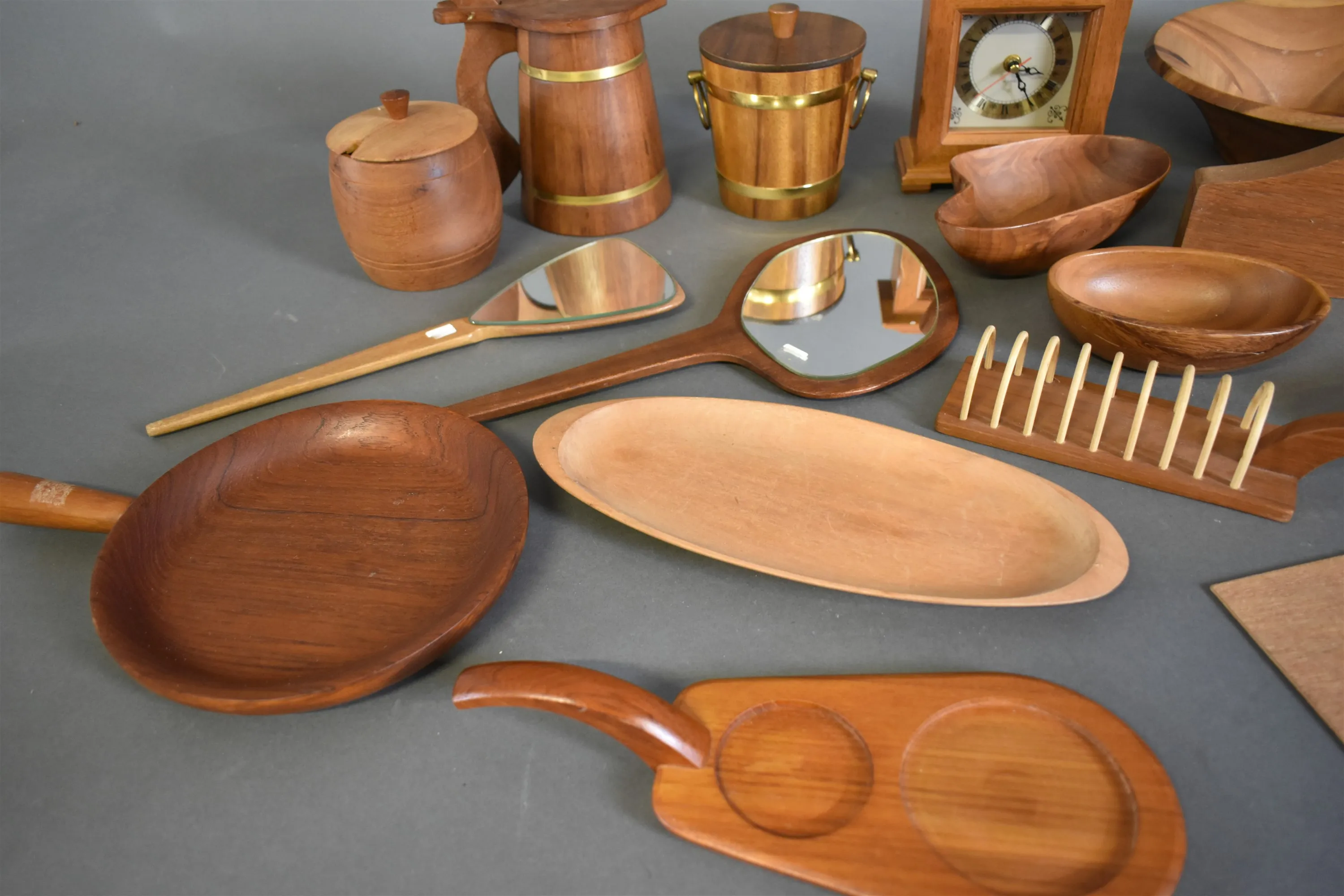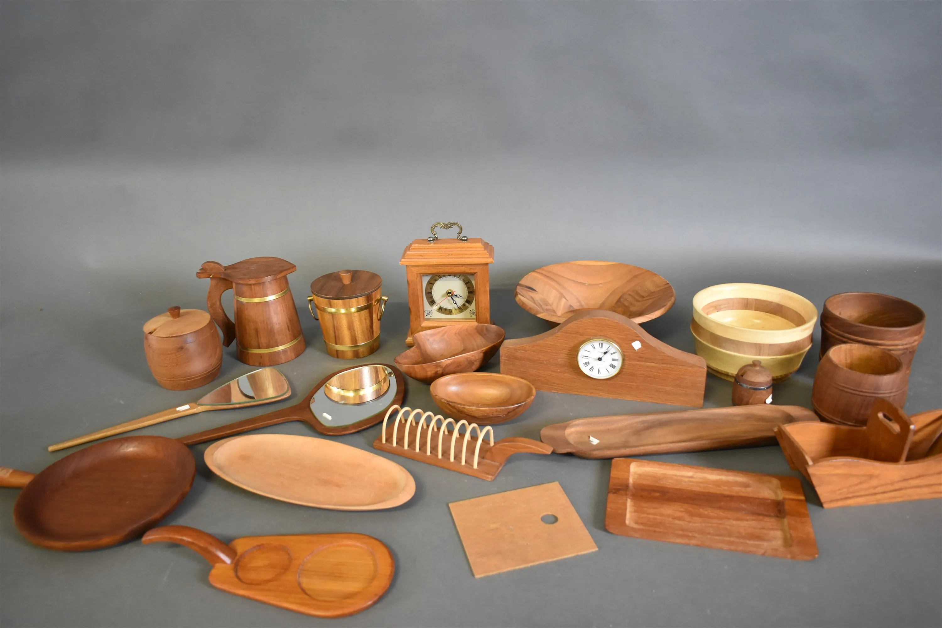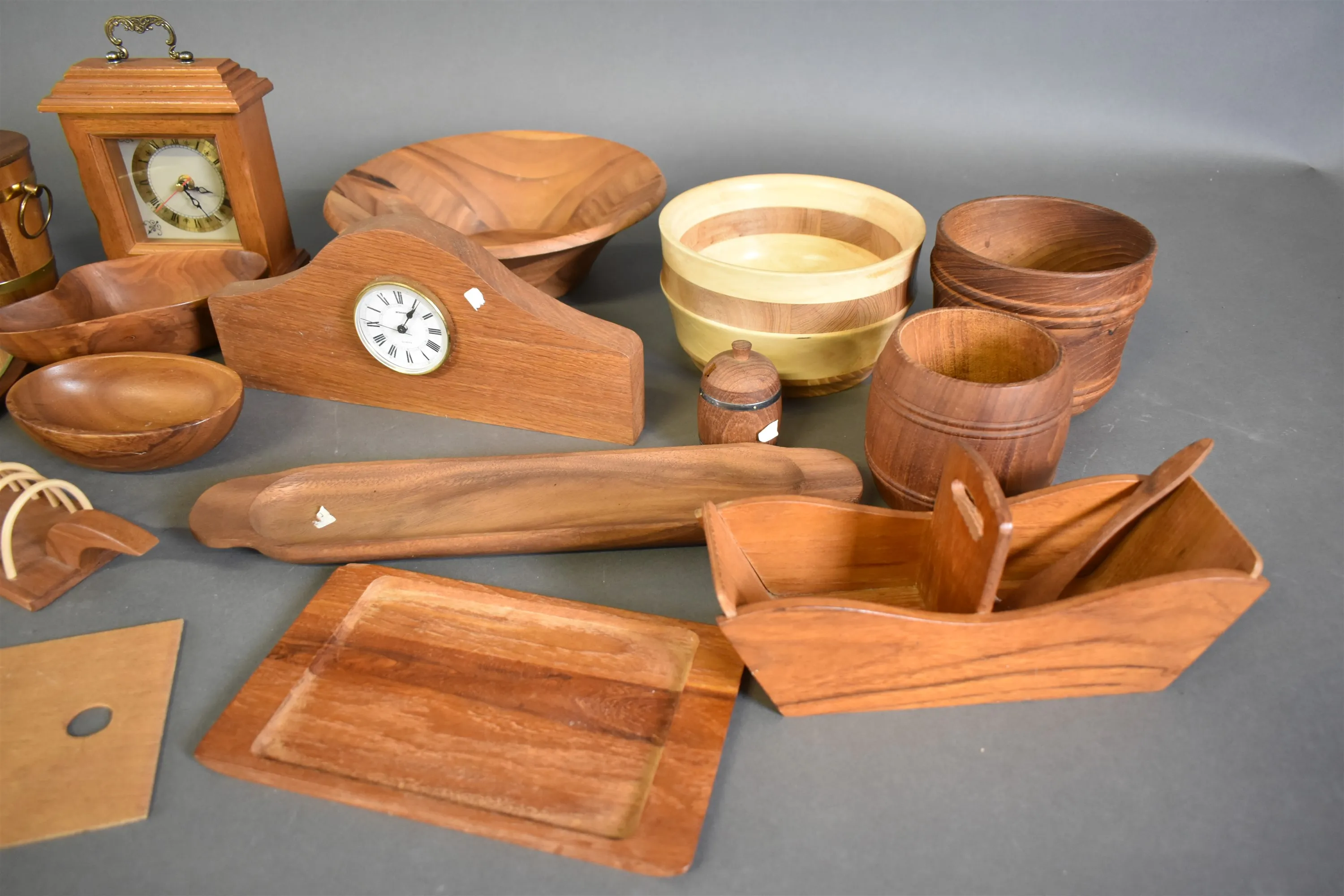 15080. Parti träföremål bla teak, högsta höjd 24