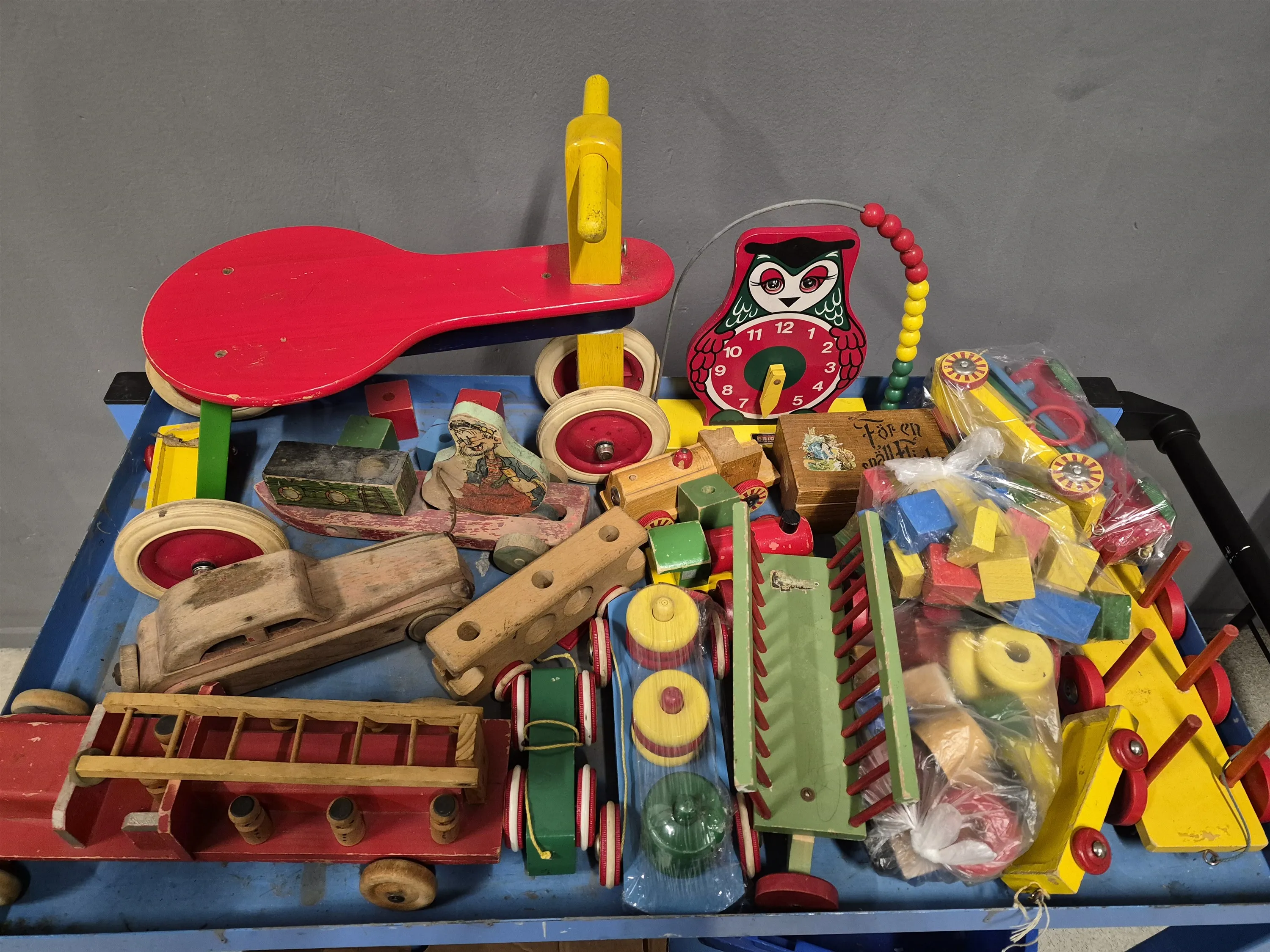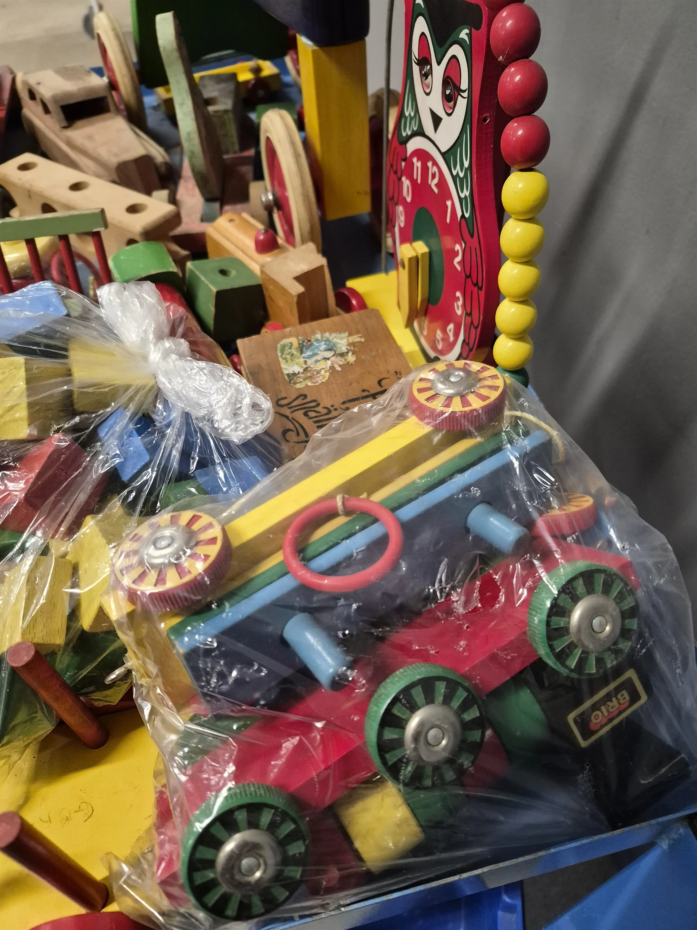 16946. Parti träleksaker bl.a BRIO, längsta mått 40 cm
