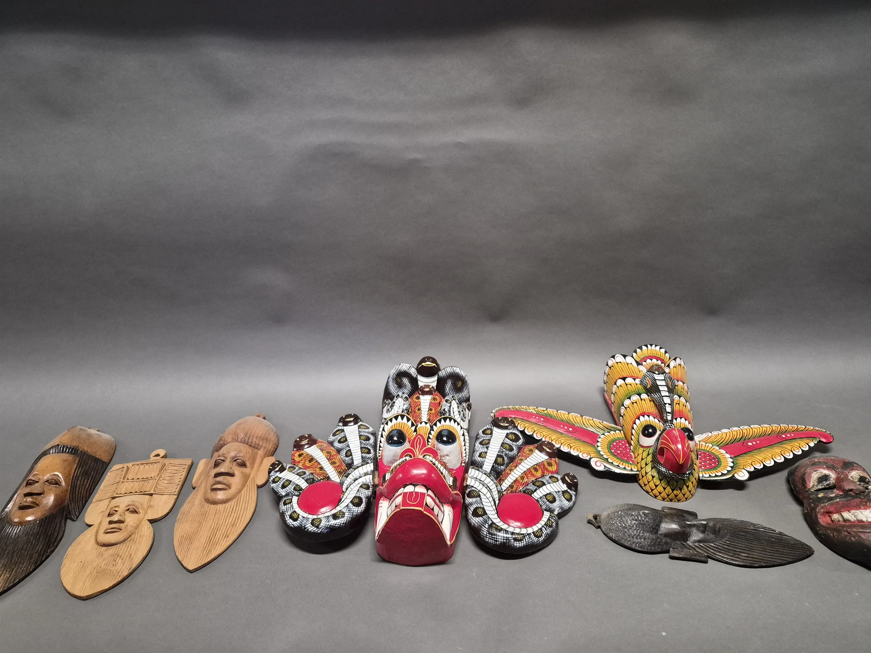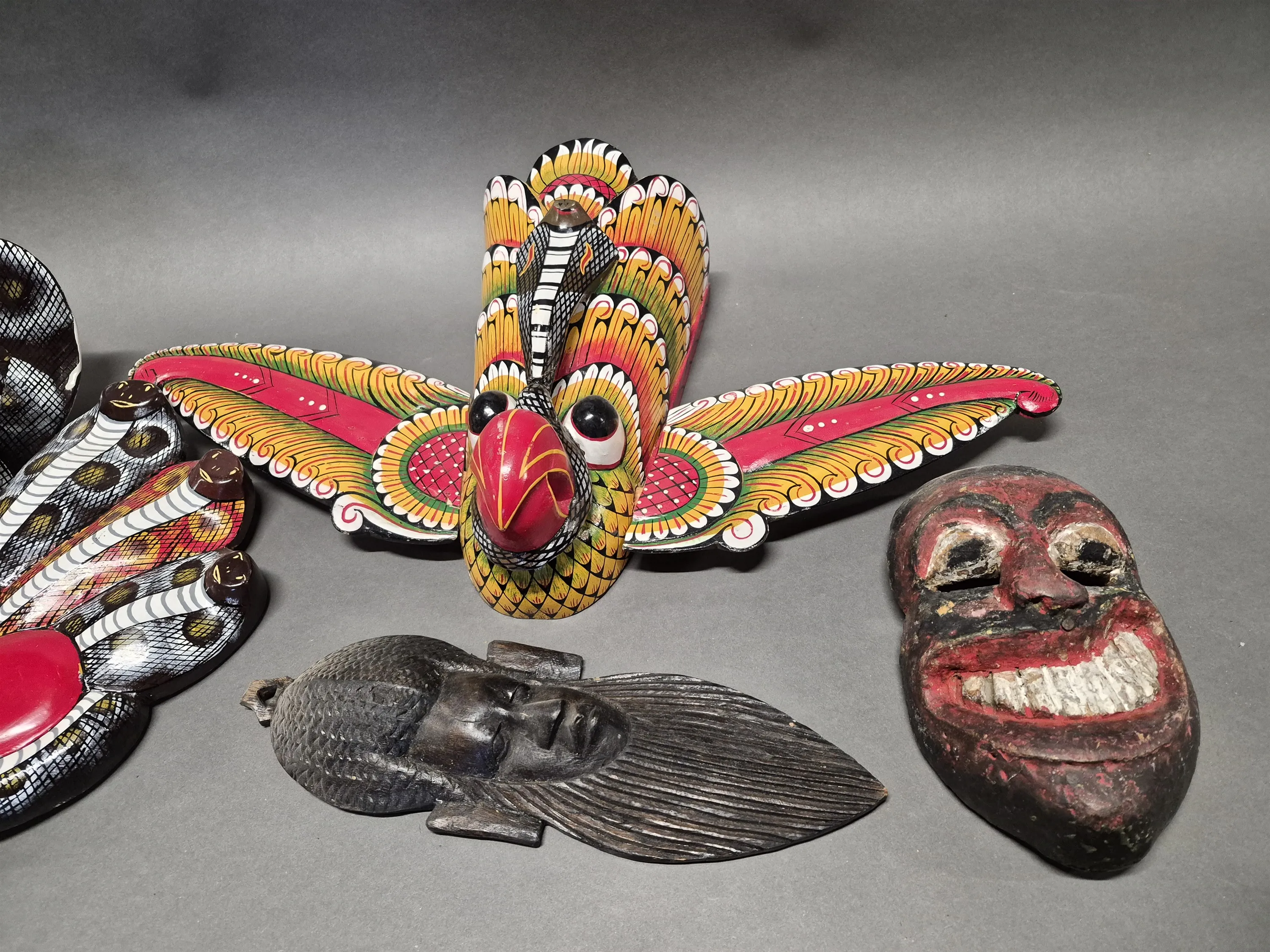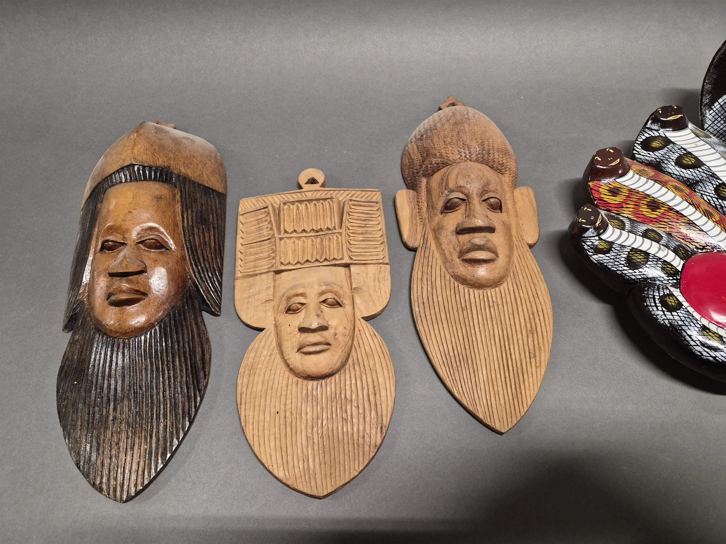 18973. Parti trämasker, längsta mått 63 cm