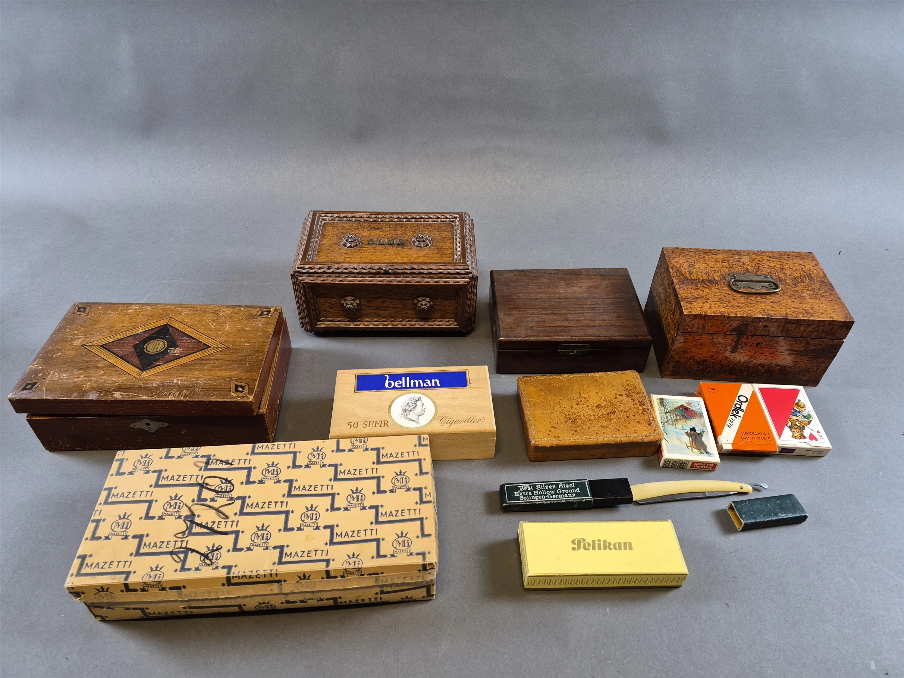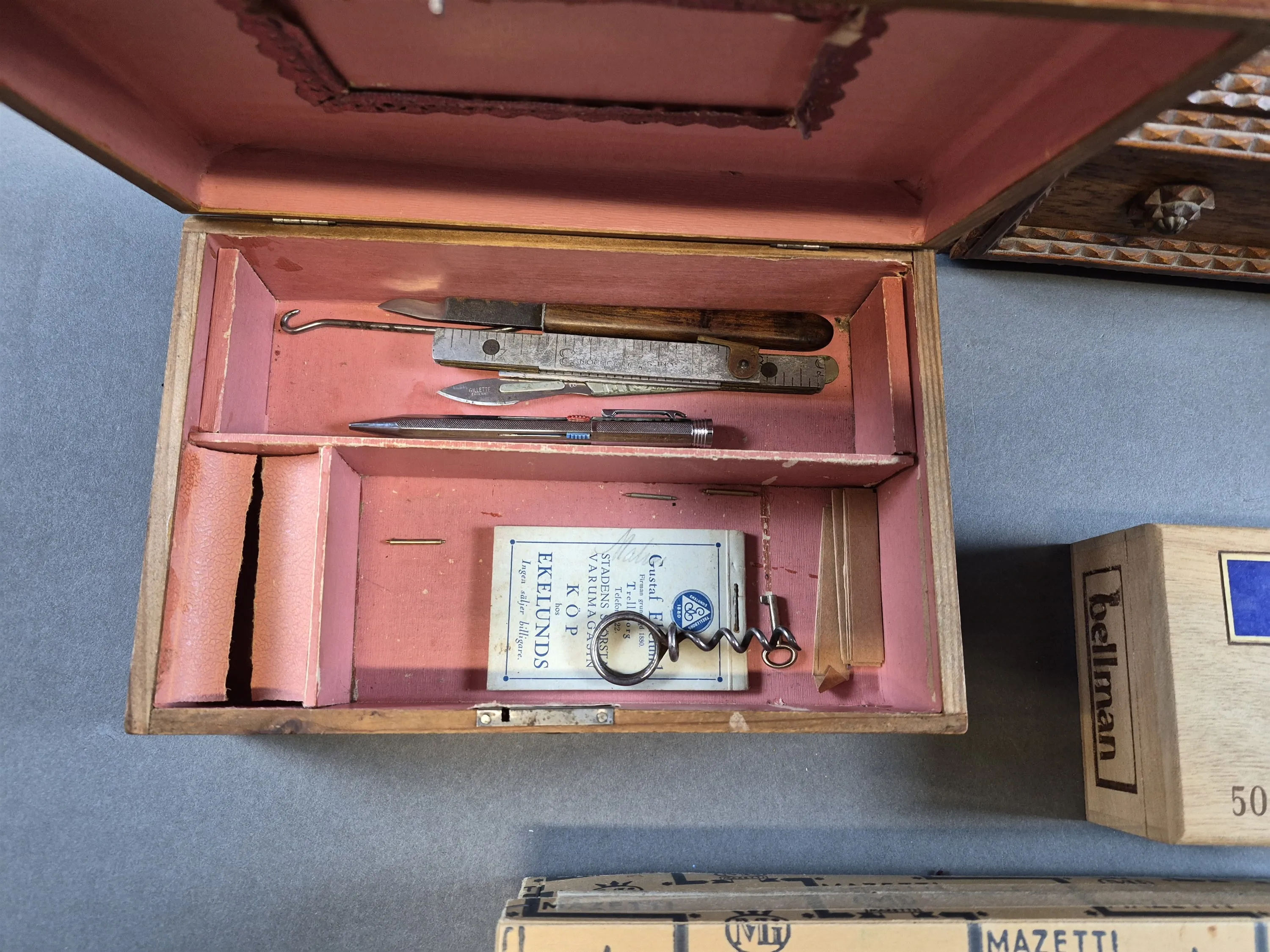 20557. Parti träskrin, kortetuier längsta 31 cm