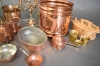 3084. Parti trä/metall, bl.a koppar högsta 31 cm