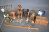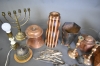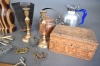 858. Parti trä/metall, bl.a titusljusstake & träskrin, högsta 30 cm