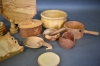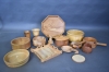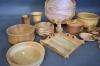 9516. Parti träföremål bla brickor och skålar, högsta höjd på bild 37 cm