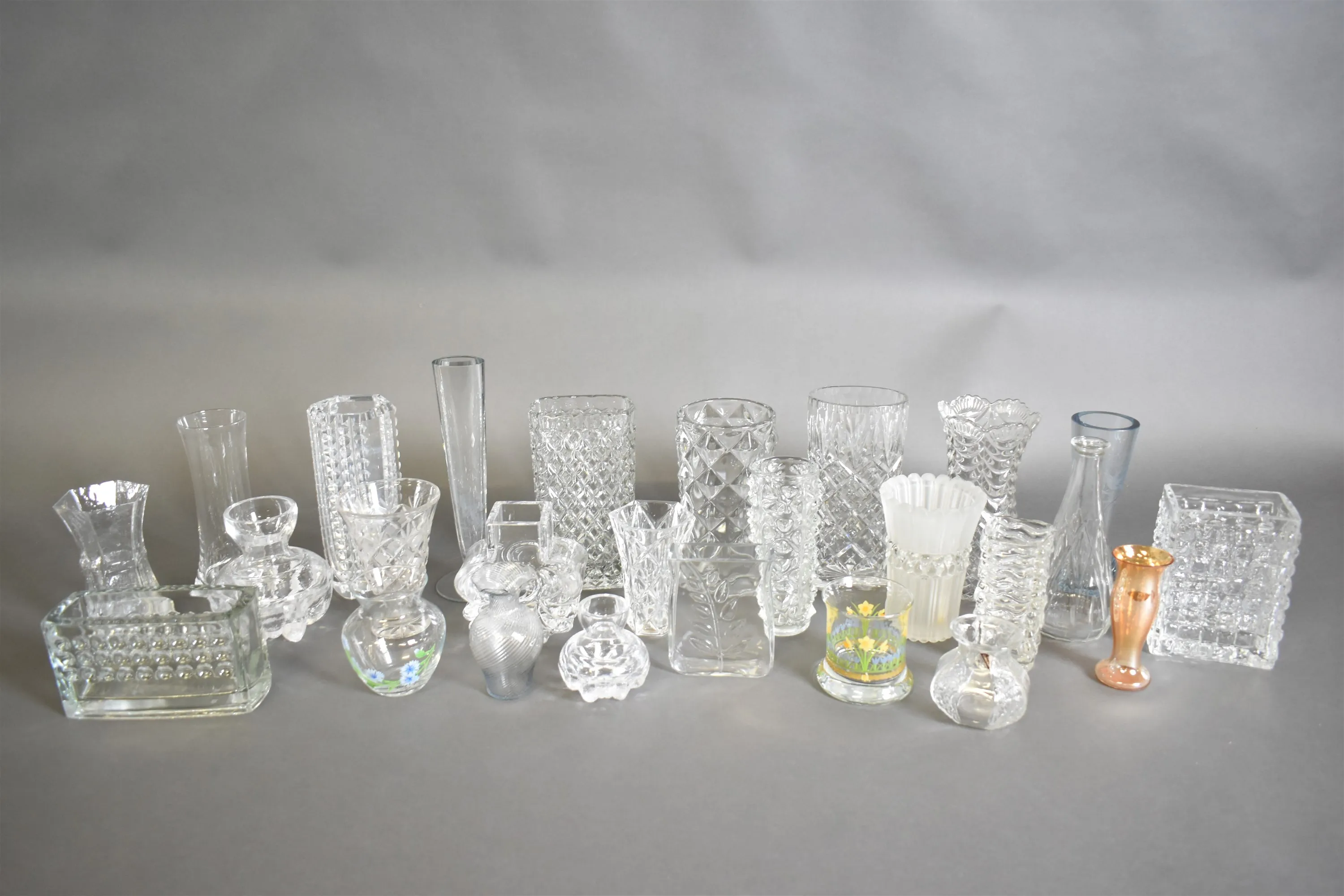 13996. Parti vaser, glas, högsta höjd 28 cm