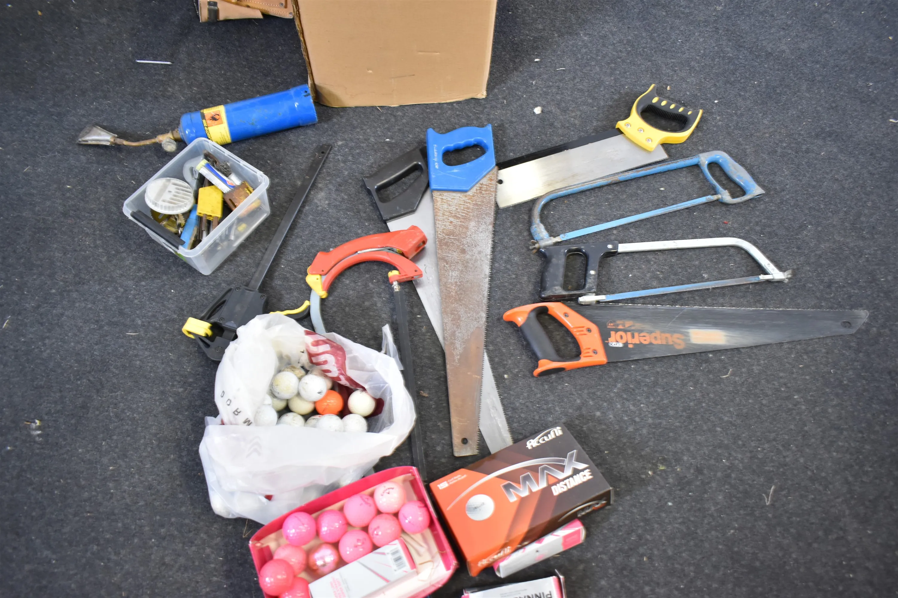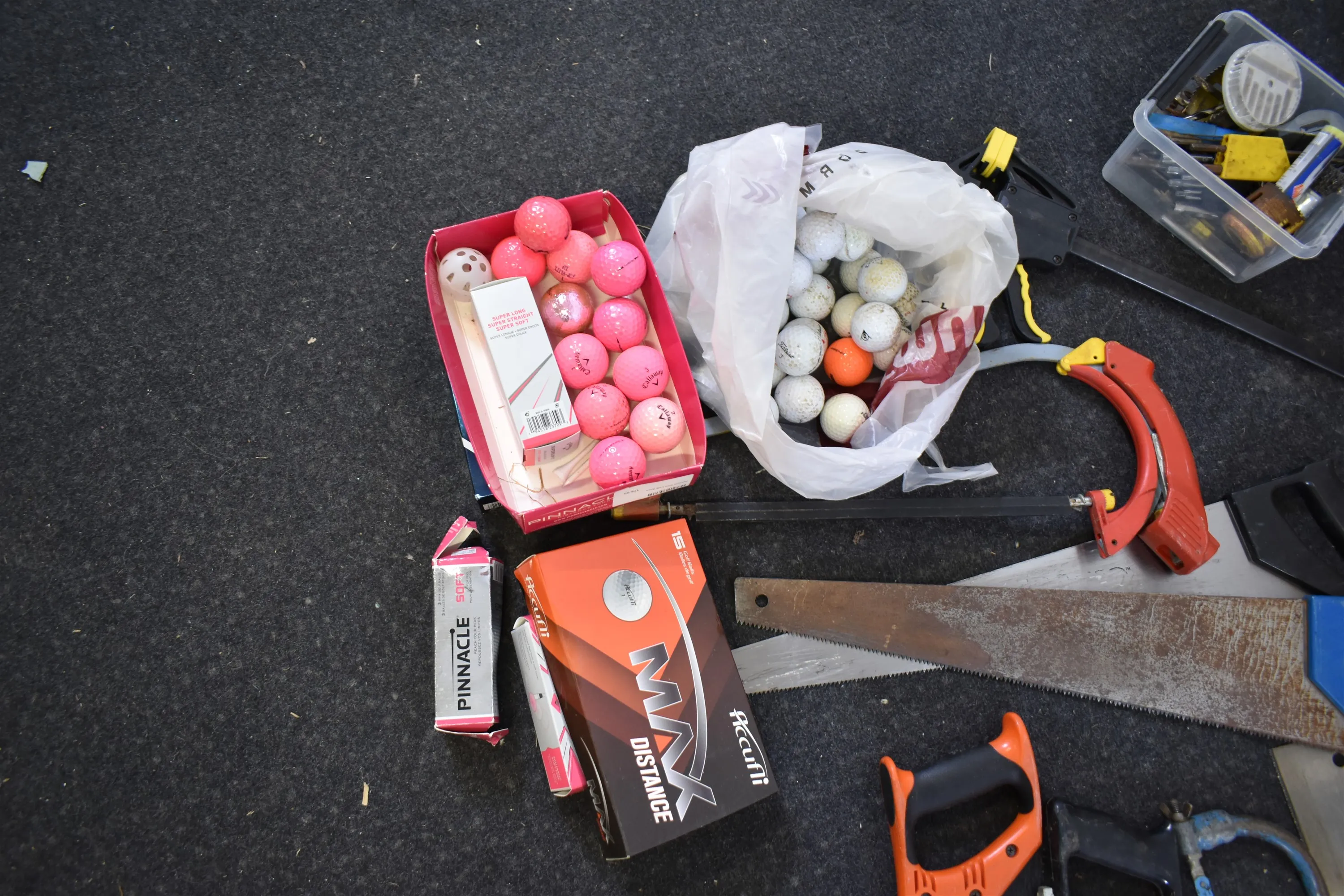 5341. Parti verktyg & golfbollar bl.a fogsvansar, längsta 50 cm