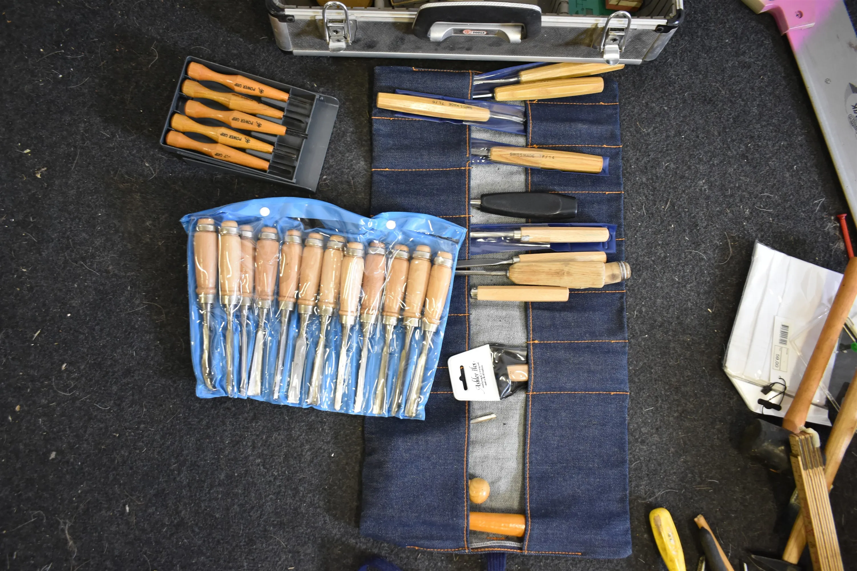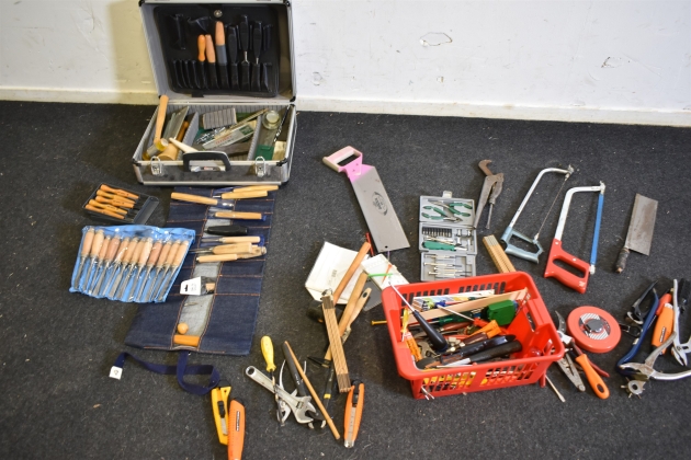 16320. Parti verktyg bl.a väska med svarvstål längsta 47 cm