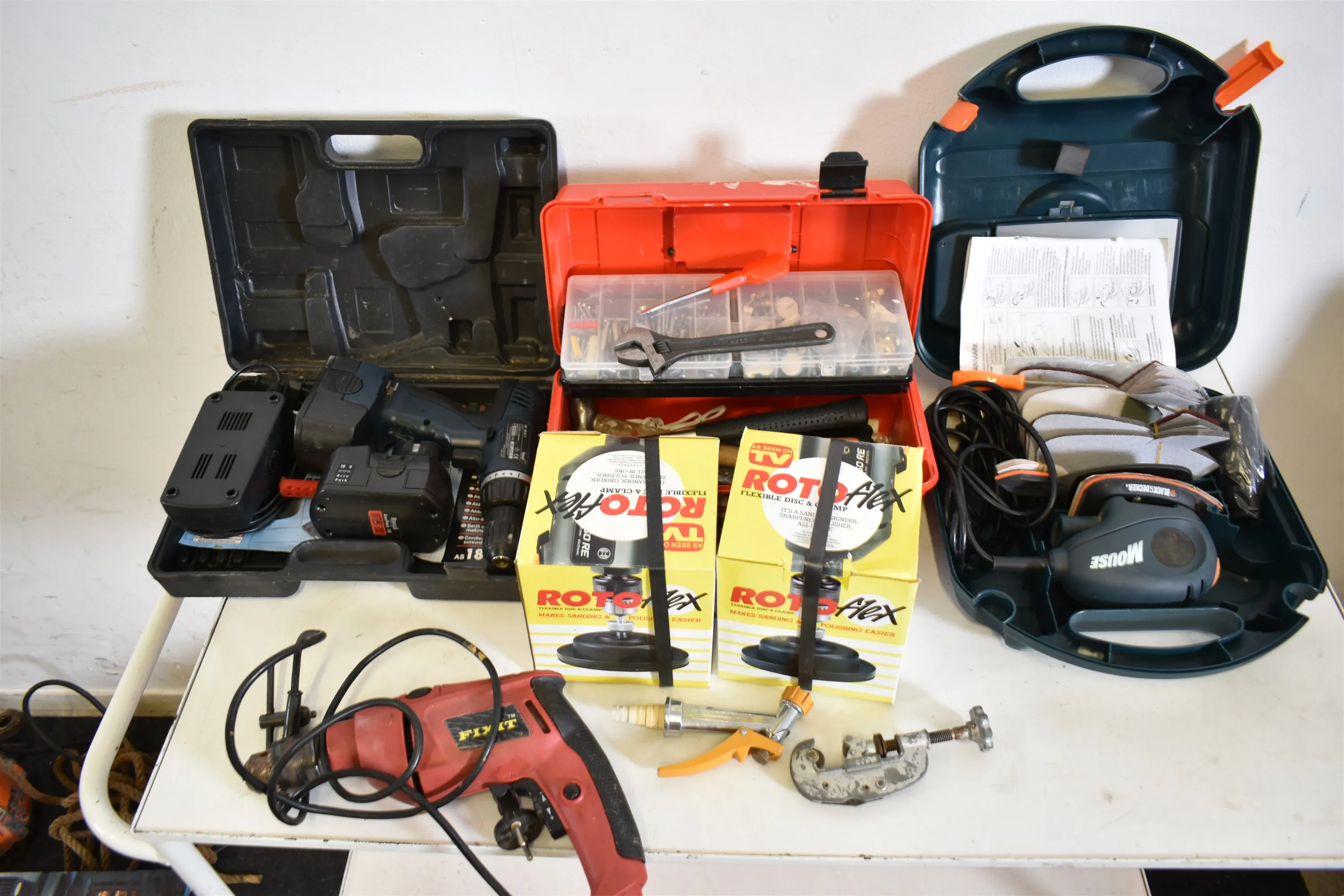 15054. Parti verktyg redskap bl.a slipmaskin Mus B & D, längsta 30 cm