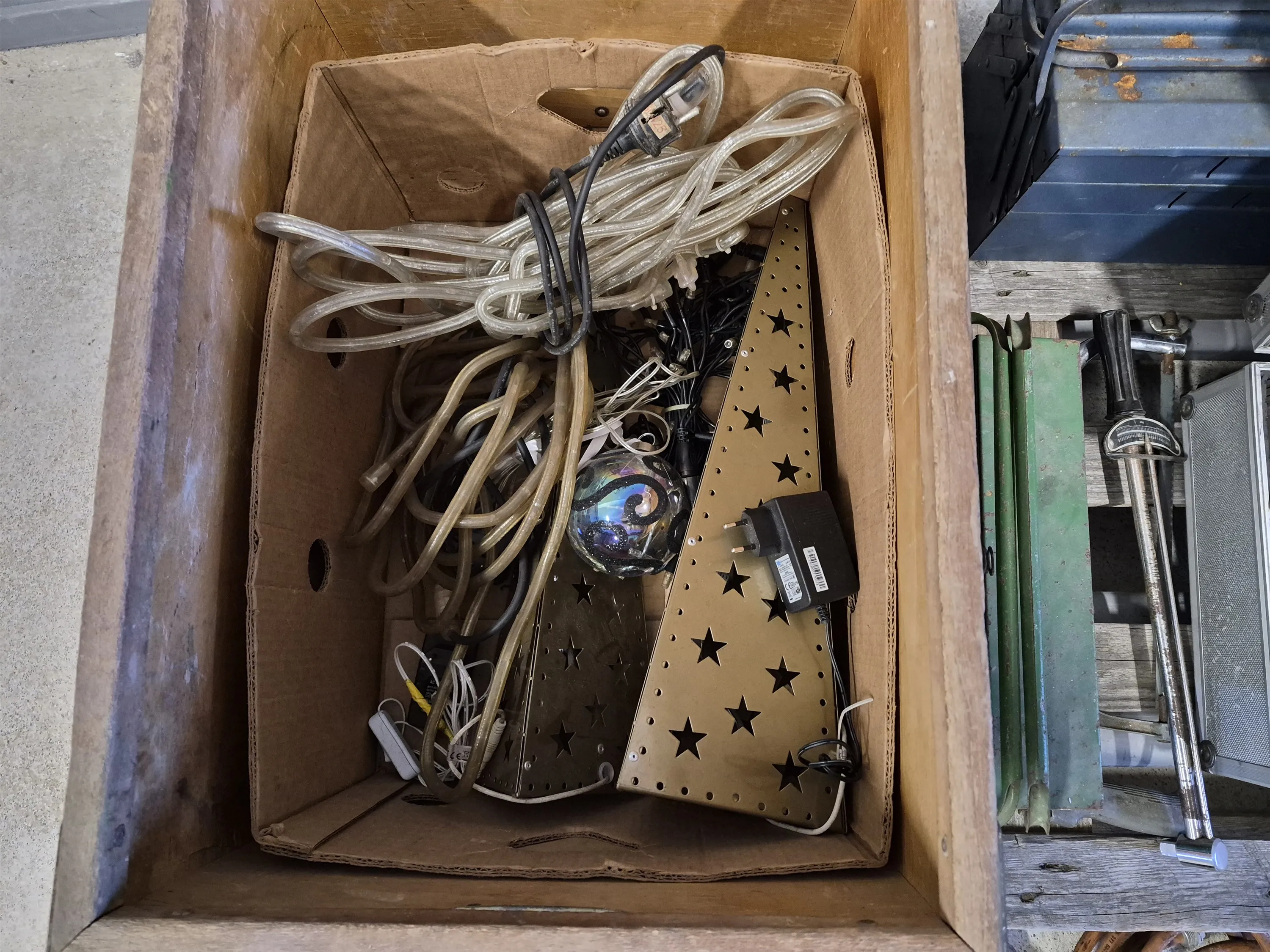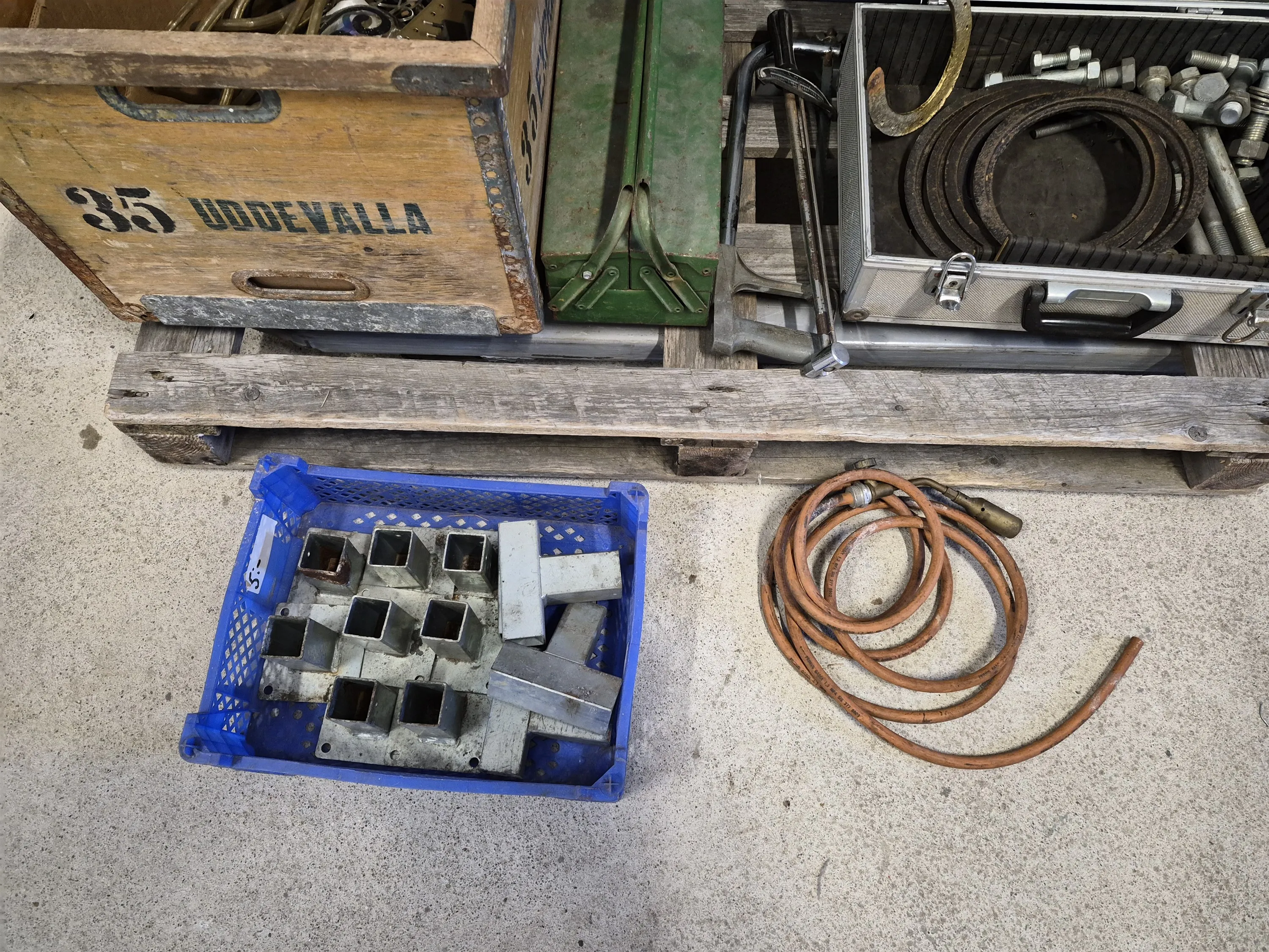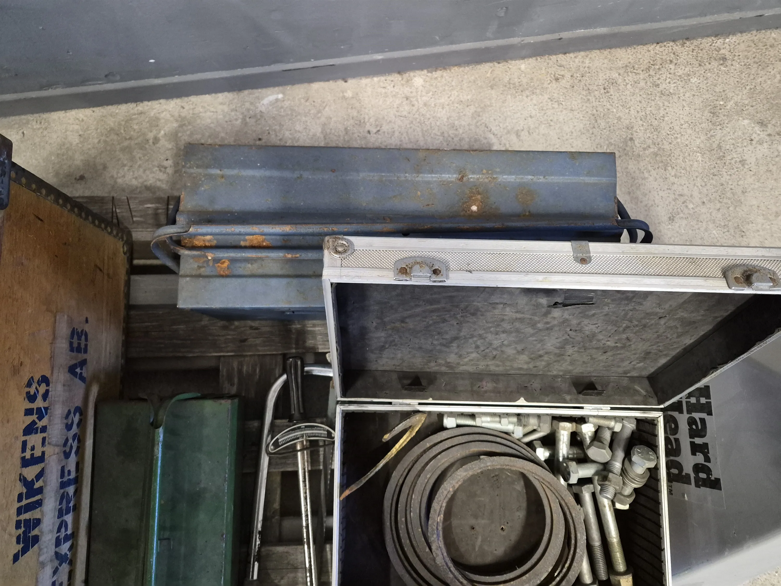19276. Parti verktygslådor, trälåda och metallföremål, längsta mått 60 cm